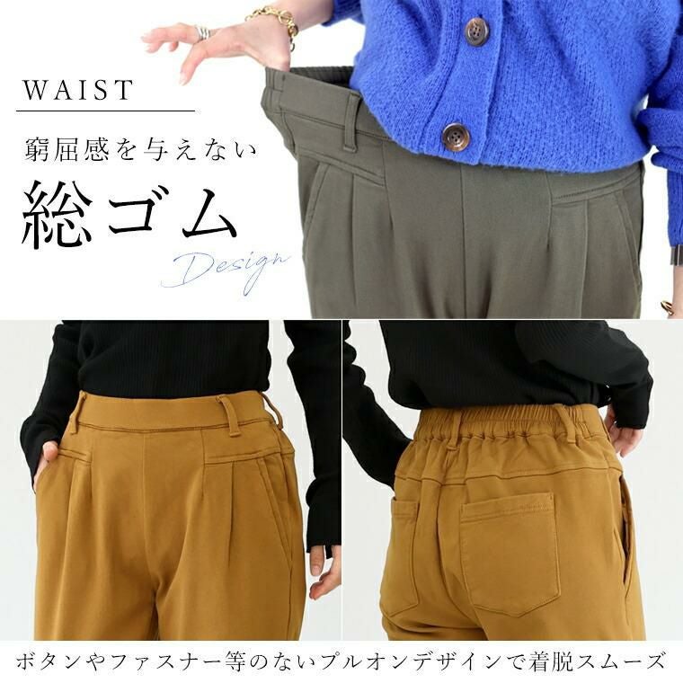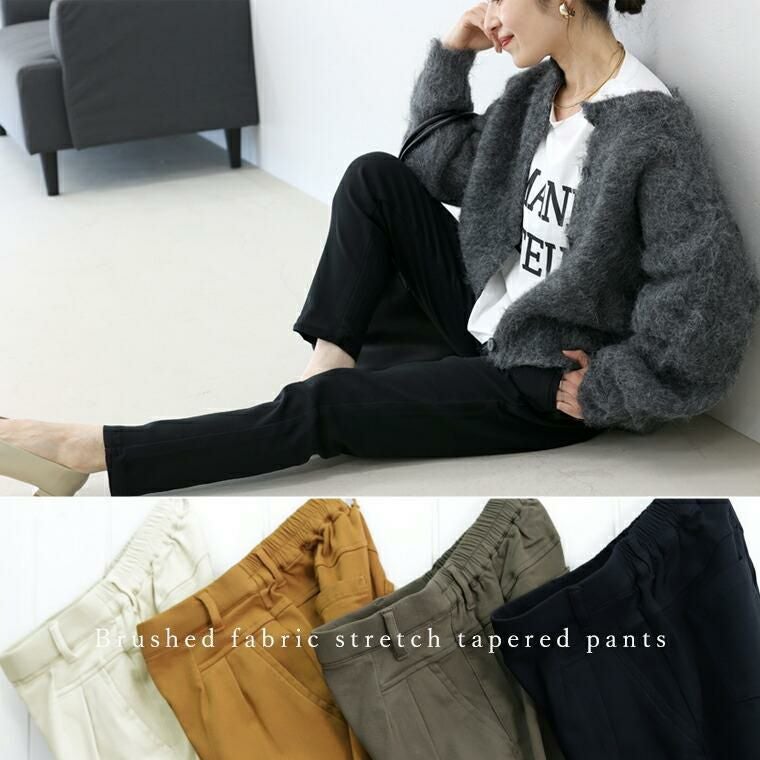 テーパードパンツ テーパード ロング パンツ ロング キレイ見え きれいめ キレイめ 綺麗め 上品 楽ちん イージー イージー素材 ストレッチ ストレッチ性 伸縮性 ストレスフリー ストレッチ ストレッチ素材 ストレッチパンツ ロング丈 長い 長め ナチュラル ズボン ずぼん 長ズボン 長ずぼん 総ゴム ゴムウエスト ウエストボム ゴムウェスト ウェストゴム ポケット 裏起毛 起毛 あったか 防寒 ブラック クロ 黒 黒色 チャコールブラウン オフベージュ ベージュ キャメル 無地