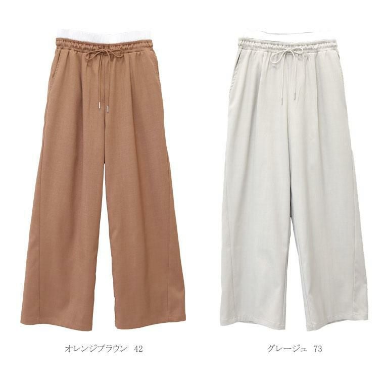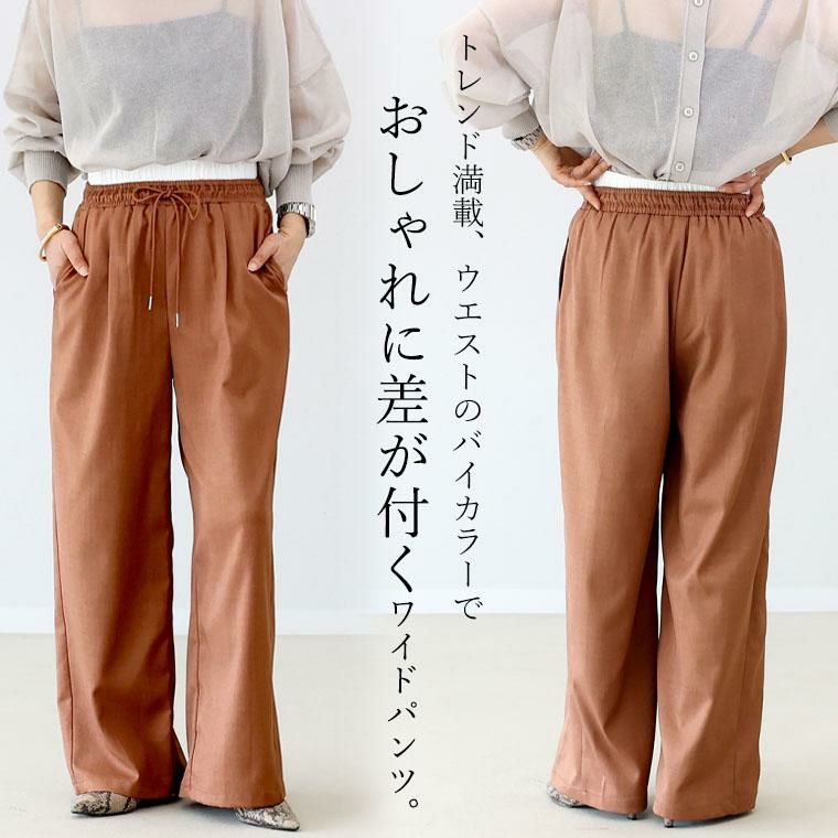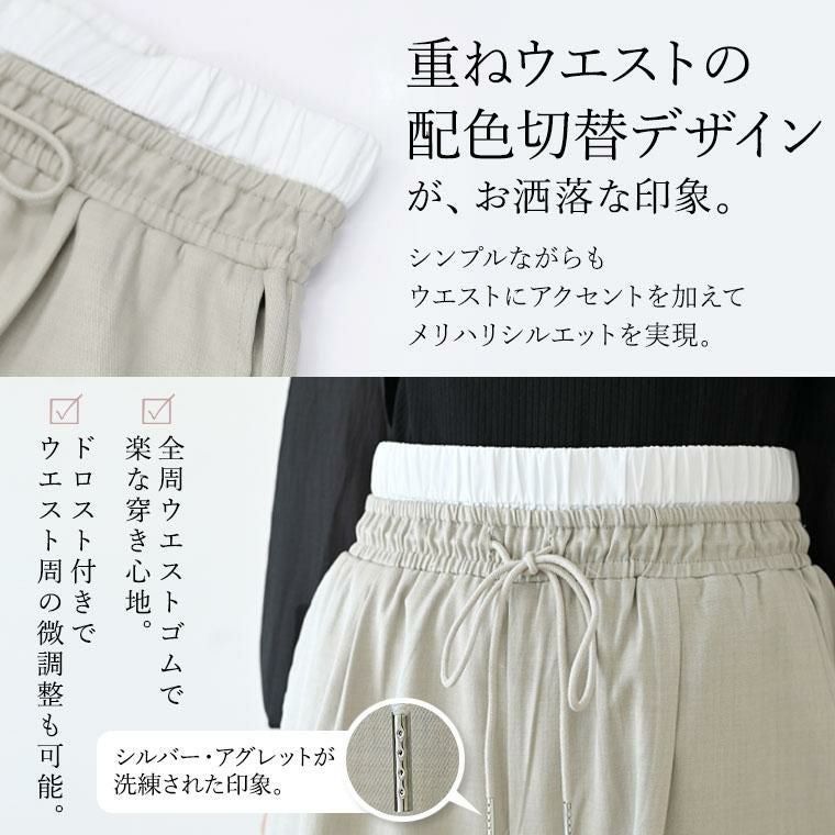 エステルツイルウエスト配色ワイドパンツ