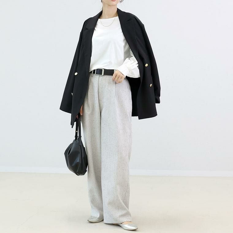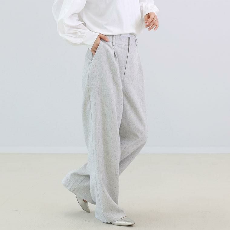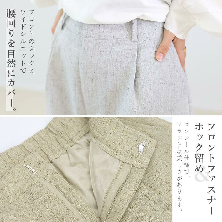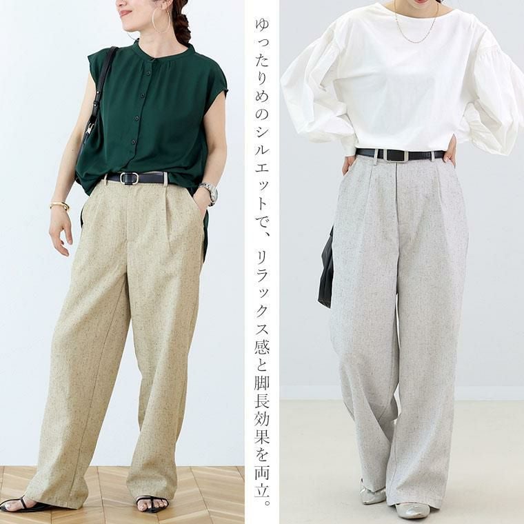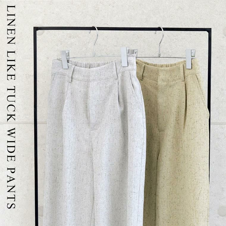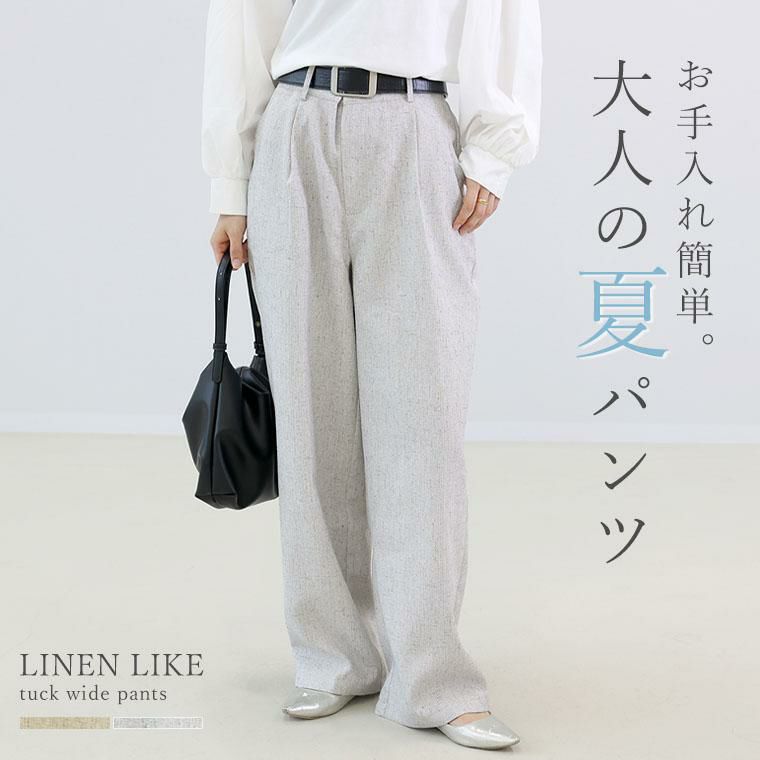 リネンライクタックワイドパンツ