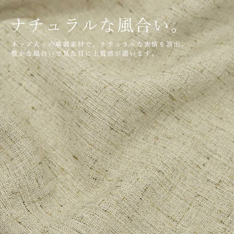 ネップ入りの麻調素材で、ナチュラルな表情を演出。豊かな風合いで見た目に上質感が漂います。ポリエステル100%だからシワになりにくく、お手入れ簡単。リネンの見た目でイージーケアなのが嬉しい。ゆったりめのシルエットで、リラックス感と脚長効果を両立。フロントのタックとワイドシルエットが、腰まわりを自然にカバー。コンシール仕様のフロントファスナー&ホック留めで、フラットな美しさがあります。膝まで裏地付きで、透けにくく安心の着用感。サイドポケット付きで実用的。ヒップにはフェイクポケットで後ろ姿にも抜け感をオン。ナチュラルテイストながらも洗練された印象。大人の夏スタイルに重宝するエフォートレスな1本です。