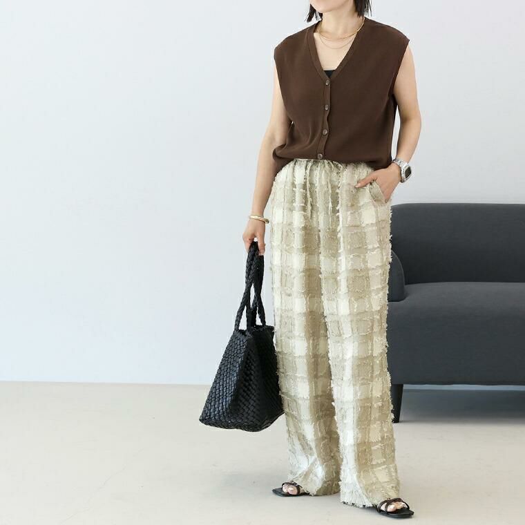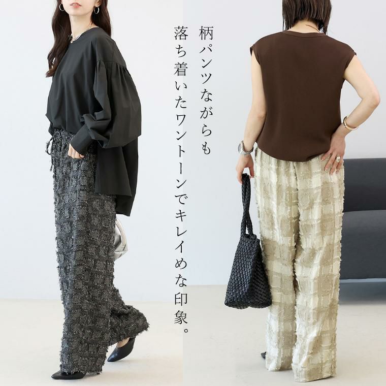 チェックフリンジジャガードイージーワイドパンツ
