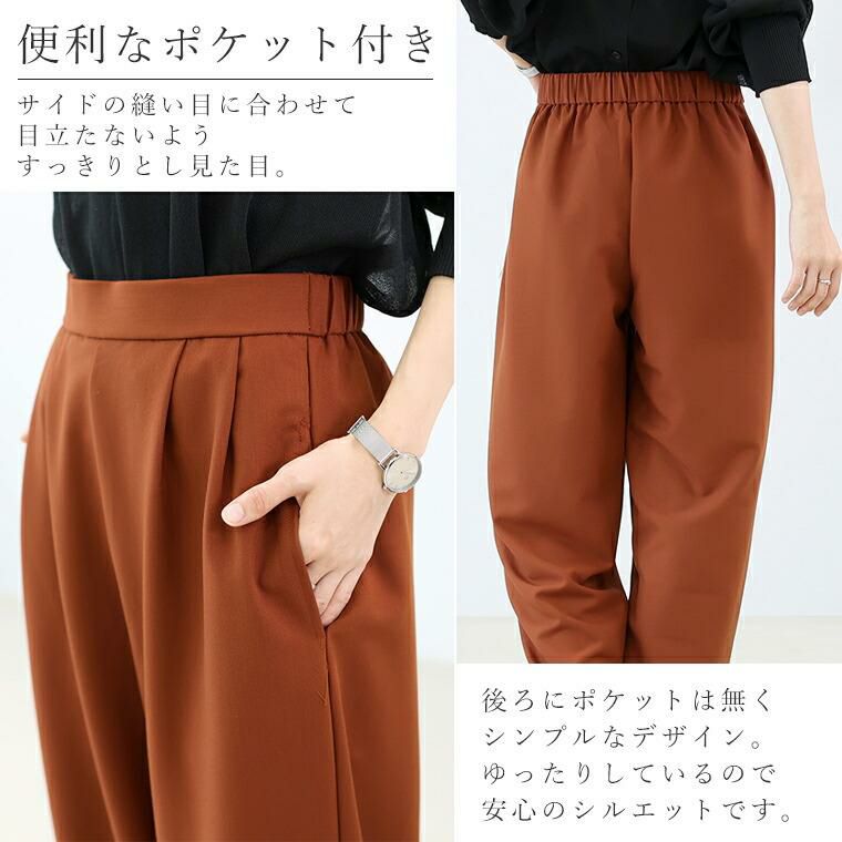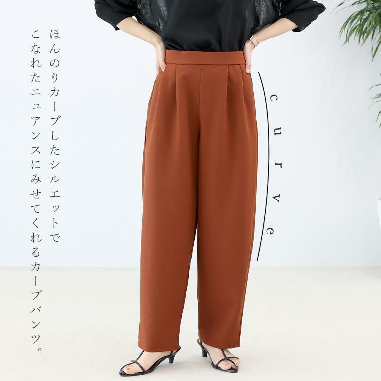 ボトムス パンツ カーブパンツ エステルツイル タック 後ろゴム プルオン きれいめ キレイめ 綺麗め 上品 おしゃれ お洒落 大人め ブラック 黒色 黒 くろ グレー 灰色 ブリック 茶色 カラバリ豊富 大きめ 大きい ワンマイルウエア ワンマイルウェア レディースファッション 無地 ラクチン らくちん 楽ちん 動きやすい プラスサイズ 着痩せ 華奢見え 脚長 脚長効果 ゆったりサイズ ゆる すっきり カバー 体型カバー きちんと シンプル カジュアル ナチュラル ベーシック オフィス オフィスカジュアル テレワーク リモートワーク リモート 会議 食事会 ランチ 女友達 参観日 二次会 飲み会 上品 知的 女性らしい 女らしい 着映え オンライン飲み会 着回し 大人 大人カジュアル オトナ 女性 綺麗 きれい キレイ キレイめ 高見え 上質 上品 大きめ 大きい 大きいサイズ 体型カバー 華奢見え 着痩せ 細見え 着回し 大人 大人カジュアル オトナ 女性 綺麗 女性 女性服 アースカラー フリーサイズ レディースファッション ラクチン 楽 らくちん 楽ちん ノンストレス 動きやすい プラスサイズ 着回し プラスサイズ ゆったり ゆったりサイズ ゆる すっきり シンプル 無地 きれい キレイ きれいめ キレイめ 高見え 上質 高級感 母の日 プレゼント ギフト 贈り物 S M L LL 2L XL 20代 30代 40代 50代 おしゃれ パ―ト バイト 仕事 仕事用 ユニフォーム 春夏 春 夏 秋冬 秋 冬 お洒落 オシャレ かわいい 可愛い カワイイ かっこいい カッコいい FUNNY COMPANY ファニーカンパニー ふぁにーかんぱにー ファニカン