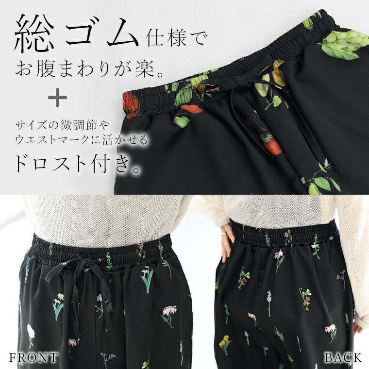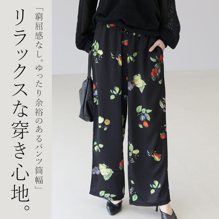 ストレートパンツ ストレート ワイド セミワイド 小花 フルーツ フラワー ボタニカル 柄 サテン ロングパンツ ウエストドロスト ロング キレイ見え きれいめ キレイめ 綺麗め 上品 楽ちん イージー イージー素材 ルーズ ゆるめ ストレスフリー ロング丈 長い 長め サイズ ズボン ずぼん 長ズボン 長ずぼん 後ろウエストゴム ホック ファスナー ポケット フェイクポケット シンプル キレイ見え きれいめ キレイめ 綺麗め 上品 大人 体型カモフラージュ 大人め ブラック ぶらっく 黒 くろ クロ ふるーつ ふらわー カラバリ豊富 大きめ 大きい ワンマイルウエア ワンマイルウェア レディースファッション 無地 ラクチン らくちん 楽ちん 動きやすい プラスサイズ 着痩せ 華奢見え 脚長 脚長効果 ゆったりサイズ ゆる すっきり カバー 体型カバー きちんと シンプル カジュアル ナチュラル ベーシック オフィス オフィスカジュアル テレワーク 会議 食事会 ランチ 女友達 参観日 二次会 飲み会 上品 知的 女性らしい 女らしい 着映え オンライン飲み会 着回し 大人 大人カジュアル オトナ 女性 綺麗 きれい キレイ キレイめ 高見え 上質 大きいサイズ 細見え 女性服 アースカラー フリーサイズ 楽 ノンストレス 動きやすい ゆったり 高級感 母の日 プレゼント ギフト 贈り物 S M L LL 2L XL 20代 30代 40代 50代 おしゃれ パ―ト バイト 仕事 仕事用 ユニフォーム 春夏 春 夏 秋冬 秋 冬 お洒落 オシャレ かわいい 可愛い カワイイ かっこいい カッコいい FUNNY COMPANY ファニーカンパニー ふぁにーかんぱにー ファニカン
