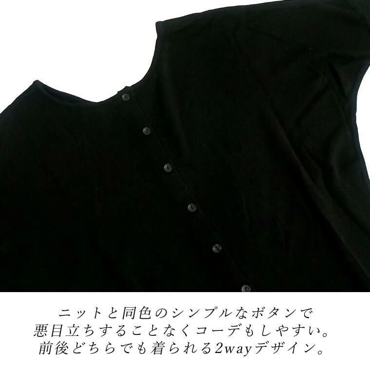 後ろボタン2wayニットプルオーバー デコルテラインをきれいに見せる緩やかなVネックにゆるいドルマンシルエット、 後ろボタンデザインが女性らしいニットプルオーバーは、カーディガンとしても使える 優秀2WAYアイテム。きちんと感のあるハイゲージの編み目でコーデを選ばず 着まわしやすく毎日のコーデも思いのまま。ワードローブに絶対使えるお役立ちアイテム。