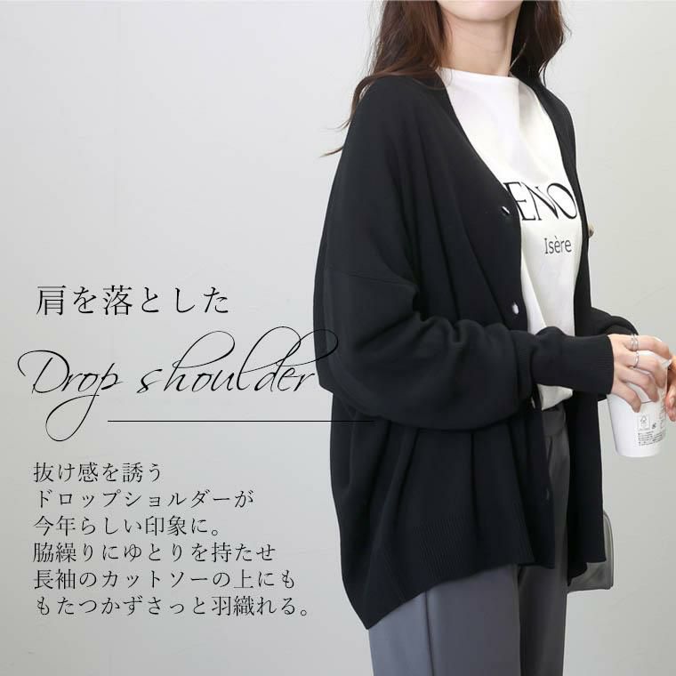 幅広いコーデに着まわせるVネックゆるカーディガン