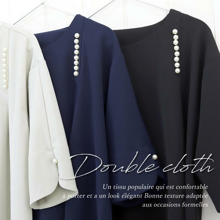 ダブルクロスパールモチーフ7分袖ブラウス 【メール便可/ma3】