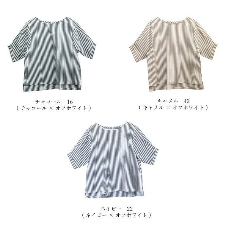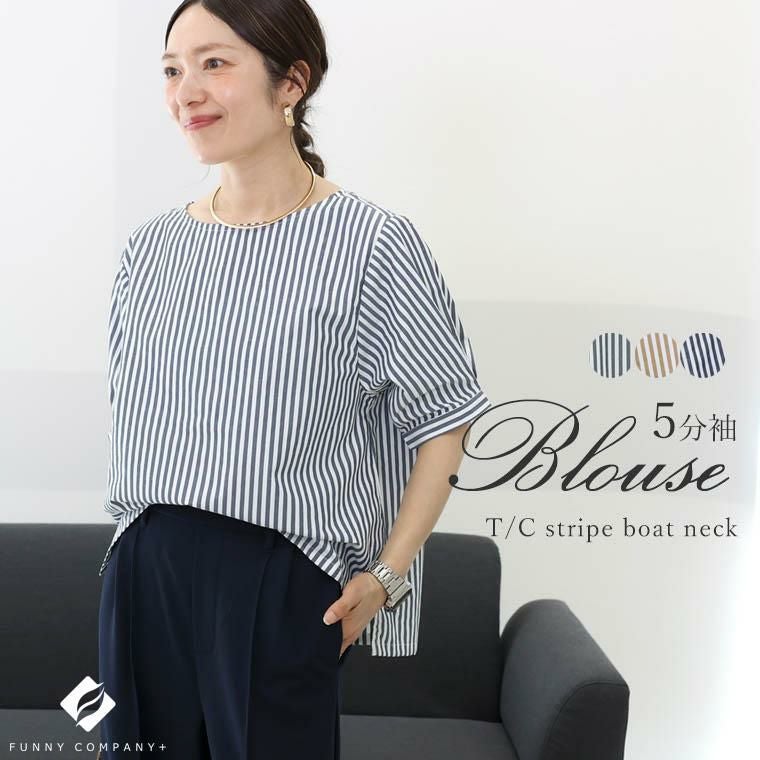 T/Cストライプボートネック5分袖ブラウス 【メール便可/ma1.5】