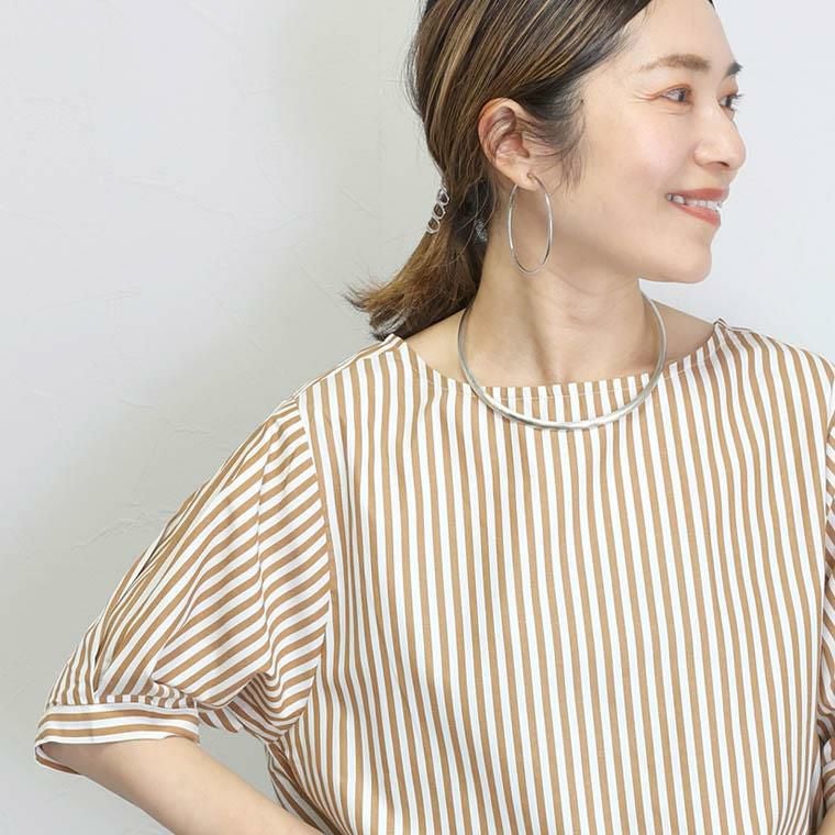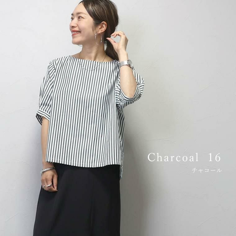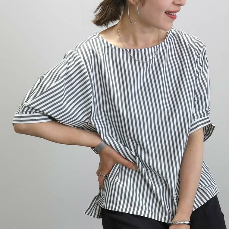 T/Cストライプボートネック5分袖ブラウス