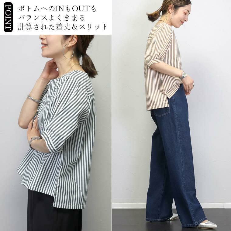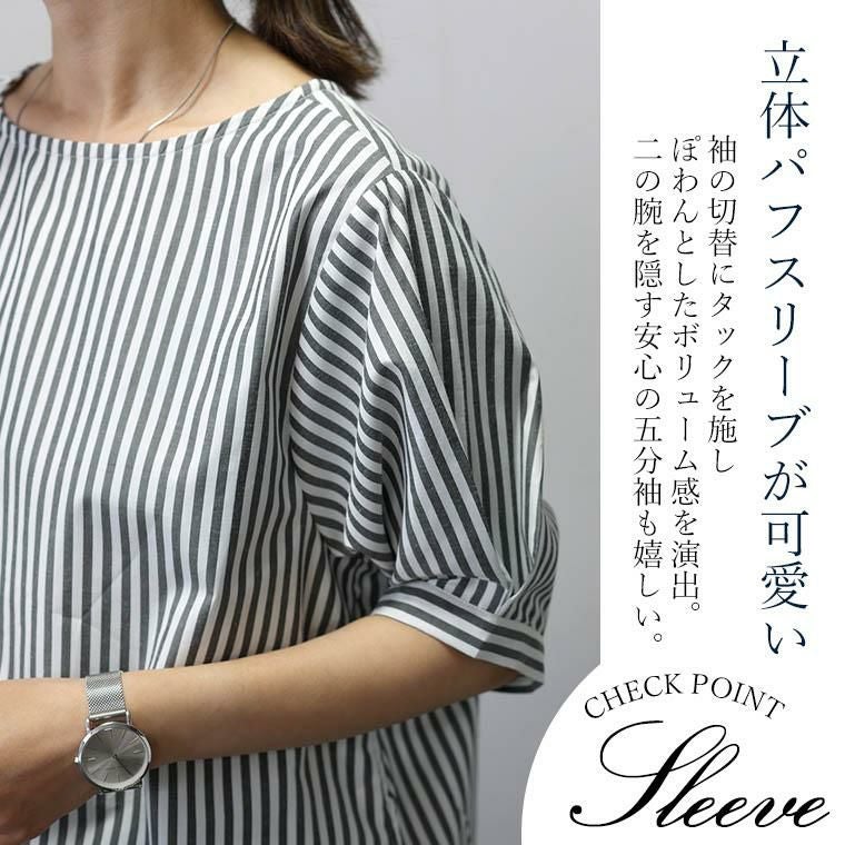 ブラウス シャツ プルオーバー 5分袖 パフ袖 パフスリーブ デザイン袖 デザインスリーブ 半袖 ストライプ ボートネック プリント 清楚 キレイ見え きれいめ キレイめ 綺麗め 上品 楽ちん イージー イージー素材 ゴールドボタン 前後差 スリット サイドスリット 体型カバー インド チャコール キャメル ベーシック 人気 定番 カラバリ豊富 大きめ 大きい ワンマイルウエア ワンマイルウェア レディースファッション 無地 ラクチン らくちん 楽ちん 動きやすい プラスサイズ 着痩せ 華奢見え ゆったりサイズ ゆる すっきり カバー 体型カバー きちんと シンプル カジュアル ナチュラル ベーシック オフィス オフィスカジュアル テレワーク リモートワーク リモート 会議 食事会 ランチ 女友達 参観日 二次会 飲み会 上品 知的 女性らしい 女らしい 着映え オンライン飲み会 着回し 大人 大人カジュアル オトナ 女性 綺麗 きれい キレイ キレイめ 高見え 上質 上品 大きめ 大きい 大きいサイズ 体型カバー 華奢見え 着痩せ 細見え 着回し 大人 大人カジュアル オトナ 女性 綺麗 女性 女性服 アースカラー フリーサイズ レディースファッション ラクチン 楽 らくちん 楽ちん ノンストレス 動きやすい プラスサイズ 着回し プラスサイズ ゆったり ゆったりサイズ ゆる すっきり シンプル 無地 きれい キレイ きれいめ キレイめ 高見え 上質 高級感 母の日 プレゼント ギフト 贈り物 S M L LL 2L XL 20代 30代 40代 50代 おしゃれ パ―ト バイト 仕事 仕事用 ユニフォーム 春夏 春 夏 秋冬 秋 冬 お洒落 オシャレ かわいい 可愛い カワイイ かっこいい カッコいい FUNNY COMPANY ファニーカンパニー ふぁにーかんぱにー ファニカン