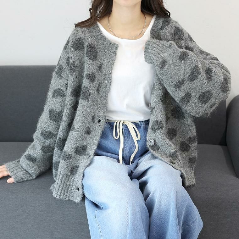 ダルメシアン柄ゆるニットカーディガン 【メール便不可】