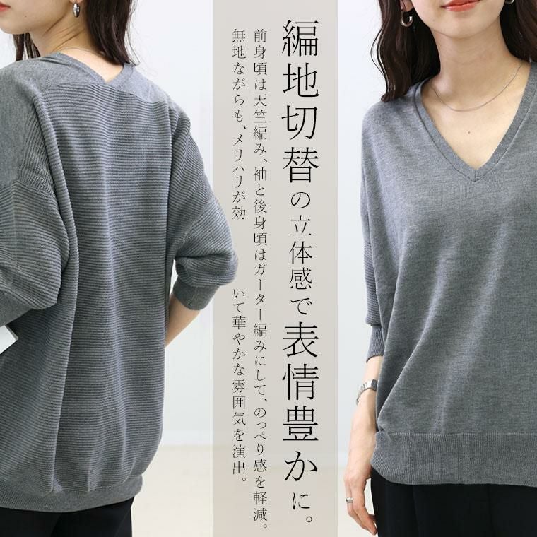 プルオーバー ニット トップス 12G ハイゲージ 編地切替 7分袖 ドルマン 前後差裾 華奢 着痩せ 透けない 伸縮 着やすい Vネック 両V ブイ デコルテ シンプル キレイ見え きれいめ キレイめ 綺麗め 上品 楽ちん イージー イージー素材 ルーズ ゆるめ PO クルーネック ゆったり くるーねっく ゆるめ リラックス おしゃれ お洒落 体型カモフラージュ 大人め ブラック クロ 黒 黒色 緑 グリーン ダークグリーン 深緑 ブルー 青 あお 青紫 パープル メランジ ぐれー ライトグレー 灰色 グレー 杢グレー もくぐれー カラバリ豊富 大きめ 大きい ワンマイルウエア ワンマイルウェア レディースファッション 無地 ラクチン らくちん 楽ちん 動きやすい プラスサイズ 着痩せ 華奢見え 脚長 脚長効果 ゆったりサイズ ゆる すっきり カバー 体型カバー きちんと シンプル カジュアル ナチュラル ベーシック オフィス オフィスカジュアル テレワーク リモートワーク リモート 会議 食事会 ランチ 女友達 参観日 二次会 飲み会 上品 知的 女性らしい 女らしい 着映え オンライン飲み会 着回し 大人 大人カジュアル オトナ 女性 綺麗 きれい キレイ キレイめ 高見え 上質 上品 大きめ 大きい 大きいサイズ 体型カバー 華奢見え 着痩せ 細見え 着回し 大人 大人カジュアル オトナ 女性 綺麗 女性 女性服 アースカラー フリーサイズ レディースファッション ラクチン 楽 らくちん 楽ちん ノンストレス 動きやすい プラスサイズ 着回し プラスサイズ ゆったり ゆったりサイズ ゆる すっきり シンプル 無地 きれい キレイ きれいめ キレイめ 高見え 上質 高級感 母の日 プレゼント ギフト 贈り物 S M L LL 2L XL 20代 30代 40代 50代 おしゃれ パ―ト バイト 仕事 仕事用 ユニフォーム 春夏 春 夏 秋冬 秋 冬 お洒落 オシャレ かわいい 可愛い カワイイ かっこいい カッコいい FUNNY COMPANY ファニーカンパニー ふぁにーかんぱにー ファニカン