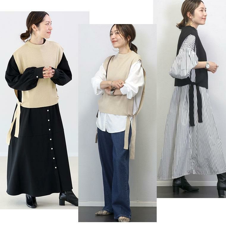 お手持ちのアイテムがにわかに旬めくサイドリボンニットベスト