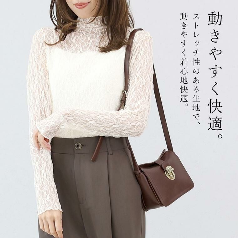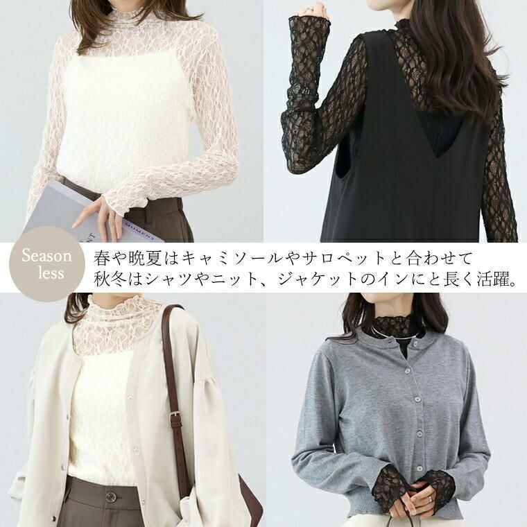 トップス プルオーバー レース ストレッチレース ボトルネック メロー 長袖 インナー 重ね着 レイヤード シアー ニット風 カットソー オフィス 軽やか 伸縮性 動きやすい 萌え袖 きれいめ キレイめ 綺麗め 上品 おしゃれ お洒落 大人め ブラック 黒 アイボリー カラバリ豊富 大きめ 大きい ワンマイルウエア ワンマイルウェア レディースファッション 無地 ラクチン らくちん 楽ちん 動きやすい プラスサイズ 着痩せ 華奢見え 脚長 脚長効果 ゆったりサイズ ゆる すっきり カバー 体型カバー きちんと シンプル カジュアル ナチュラル ベーシック オフィス オフィスカジュアル テレワーク リモートワーク リモート 会議 食事会 ランチ 女友達 参観日 二次会 飲み会 上品 知的 女性らしい 女らしい 着映え オンライン飲み会 着回し 大人 大人カジュアル オトナ 女性 綺麗 きれい キレイ キレイめ 高見え 上質 上品 大きめ 大きい 大きいサイズ 体型カバー 華奢見え 着痩せ 細見え 着回し 大人 大人カジュアル オトナ 女性 綺麗 女性 女性服 アースカラー フリーサイズ レディースファッション ラクチン 楽 らくちん 楽ちん ノンストレス 動きやすい プラスサイズ 着回し プラスサイズ ゆったり ゆったりサイズ ゆる すっきり シンプル 無地 きれい キレイ きれいめ キレイめ 高見え 上質 高級感 母の日 プレゼント ギフト 贈り物 S M L LL 2L XL 20代 30代 40代 50代 おしゃれ パ―ト バイト 仕事 仕事用 ユニフォーム 春夏 春 夏 秋冬 秋 冬 お洒落 オシャレ かわいい 可愛い カワイイ かっこいい カッコいい FUNNY COMPANY ファニーカンパニー ふぁにーかんぱにー ファニカン