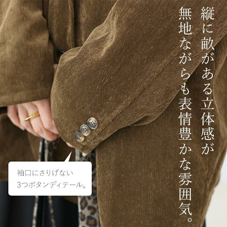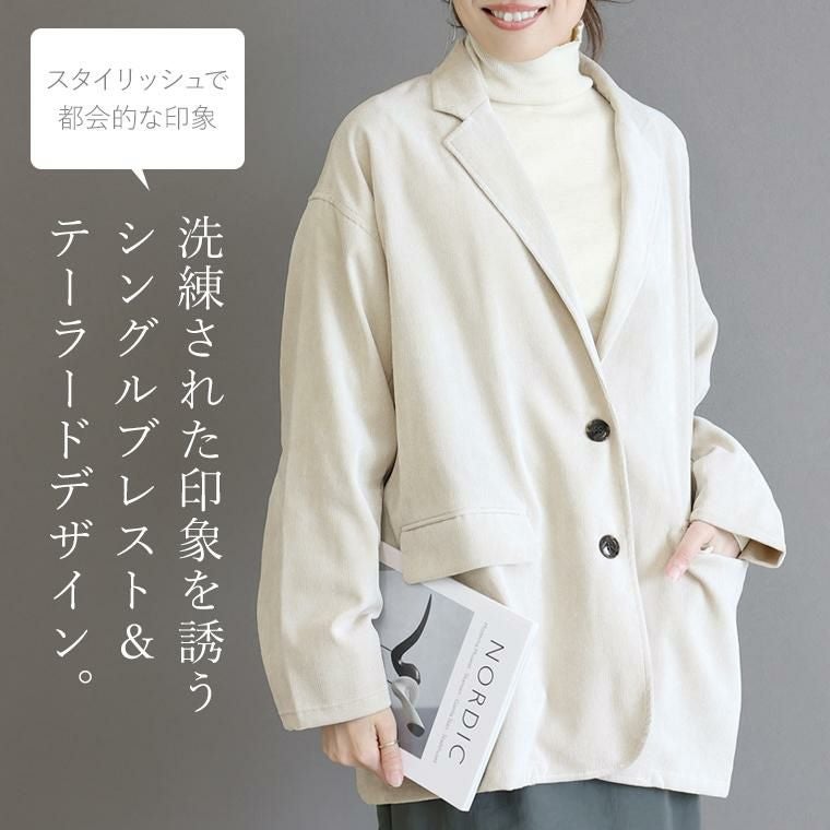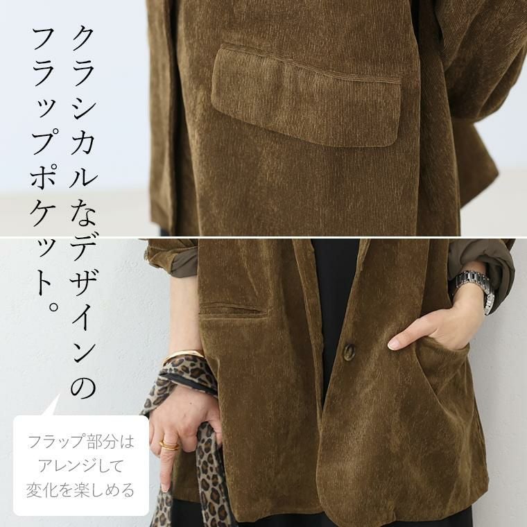 アウター ジャケット テーラード シングルブレスト シングルジャケット コーデュロイ きれいめ キレイめ 綺麗め 上品 おしゃれ お洒落 大人め チャコール ちゃこーる グレー ぐれー おふべーじゅ オフベージュ カラバリ豊富 大きめ 大きい ワンマイルウエア ワンマイルウェア レディースファッション 無地 ラクチン らくちん 楽ちん 動きやすい プラスサイズ 着痩せ 華奢見え 脚長 脚長効果 ゆったりサイズ ゆる すっきり カバー 体型カバー きちんと シンプル カジュアル ナチュラル ベーシック オフィス オフィスカジュアル テレワーク リモートワーク リモート 会議 食事会 ランチ 女友達 参観日 二次会 飲み会 上品 知的 女性らしい 女らしい 着映え オンライン飲み会 着回し 大人 大人カジュアル オトナ 女性 綺麗 きれい キレイ キレイめ 高見え 上質 上品 大きめ 大きい 大きいサイズ 体型カバー 華奢見え 着痩せ 細見え 着回し 大人 大人カジュアル オトナ 女性 綺麗 女性 女性服 アースカラー フリーサイズ レディースファッション ラクチン 楽 らくちん 楽ちん ノンストレス 動きやすい プラスサイズ 着回し プラスサイズ ゆったり ゆったりサイズ ゆる すっきり シンプル 無地 きれい キレイ きれいめ キレイめ 高見え 上質 高級感 母の日 プレゼント ギフト 贈り物 S M L LL 2L XL 20代 30代 40代 50代 おしゃれ パ―ト バイト 仕事 仕事用 ユニフォーム 春夏 春 夏 秋冬 秋 冬 お洒落 オシャレ かわいい 可愛い カワイイ かっこいい カッコいい FUNNY COMPANY ファニーカンパニー ふぁにーかんぱにー ファニカン