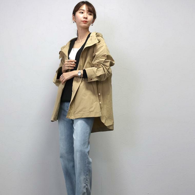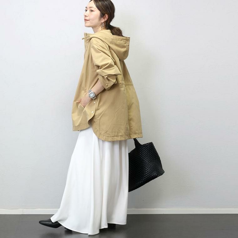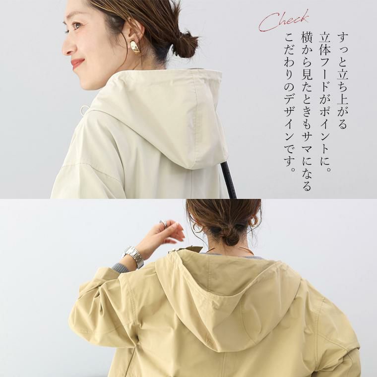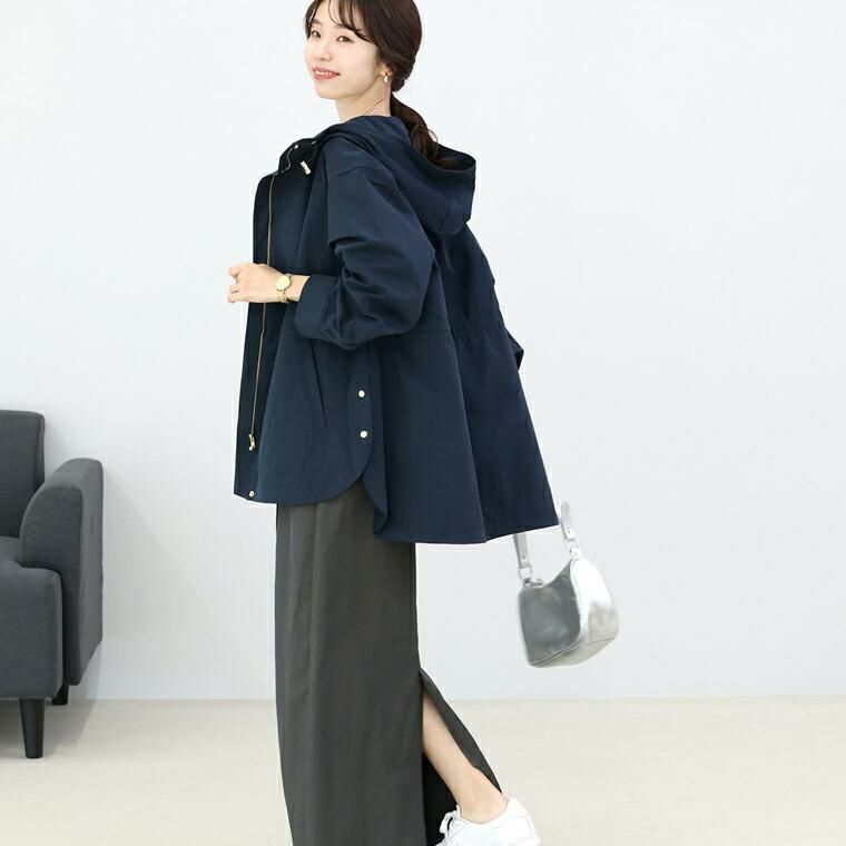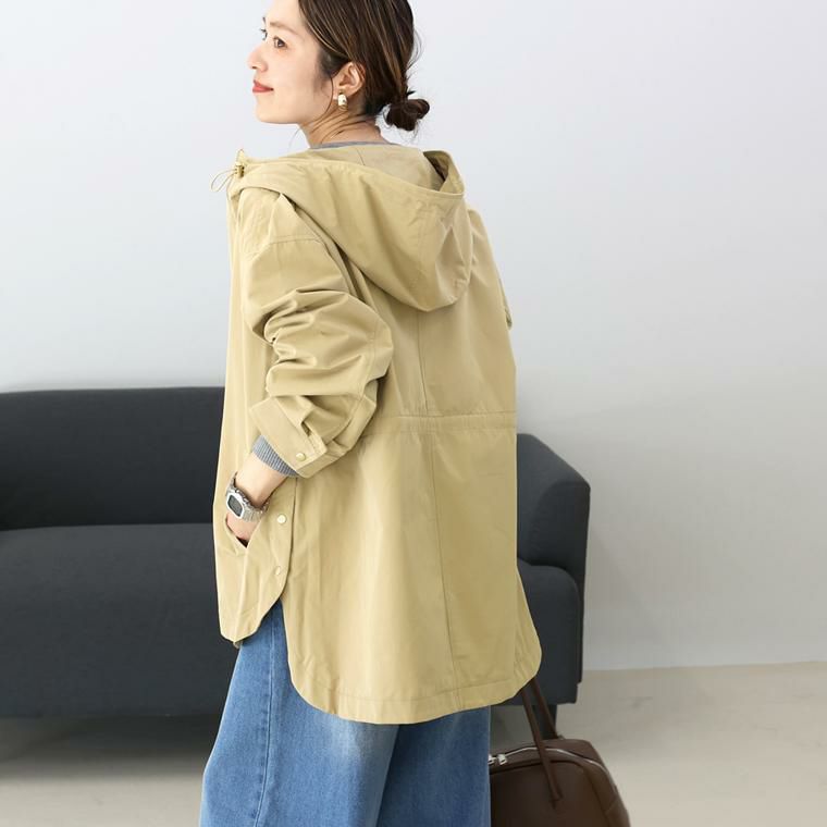 上品さと女性らしさを備えたフード付きれいめマウンテンパーカー