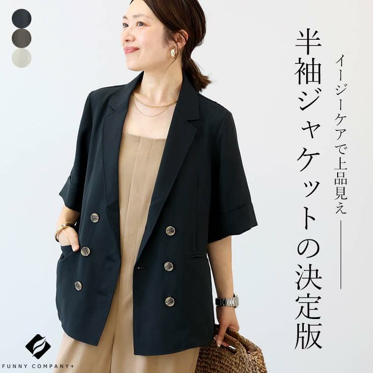 ジャケット ライトジャケット ライトアウター テーラード アウター ダブル ダブルブレステッド 羽織り はおり 羽織 半袖 ハーフスリーブ 防寒 季節の変わり目 体型カバー 日焼け対策 日焼け防止 ひやけたいさく ひやけぼうし ひよけ クーラー対策 冷房対策 温度調節 気温調節 杢調ツイル 杢調 ツイル とろみ 薄手 スコッチボタン 深V Vネック キレイ見え きれいめ キレイめ 綺麗め 上品 楽ちん ゆるめ ゆったり ボタン 袖デザイン リラックス おしゃれ お洒落 体型カモフラージュ 大人め ブラック 黒 くろ ぶらっく グレージュ カラバリ豊富 大きめ 大きい ワンマイルウエア ワンマイルウェア レディースファッション 無地 ラクチン らくちん 楽ちん 動きやすい プラスサイズ 着痩せ 華奢見え 脚長 脚長効果 ゆったりサイズ ゆる すっきり カバー 体型カバー きちんと シンプル カジュアル ナチュラル ベーシック オフィス オフィスカジュアル テレワーク 会議 食事会 ランチ 女友達 参観日 二次会 飲み会 上品 知的 女性らしい 女らしい 着映え オンライン飲み会 着回し 大人 大人カジュアル オトナ 女性 綺麗 きれい キレイ キレイめ 高見え 上質 大きいサイズ 細見え 女性服 アースカラー フリーサイズ 楽 ノンストレス 動きやすい ゆったり 高級感 母の日 プレゼント ギフト 贈り物 S M L LL 2L XL 20代 30代 40代 50代 おしゃれ パ―ト バイト 仕事 仕事用 ユニフォーム 春夏 春 夏 秋冬 秋 冬 お洒落 オシャレ かわいい 可愛い カワイイ かっこいい カッコいい FUNNY COMPANY ファニーカンパニー ふぁにーかんぱにー ファニカン