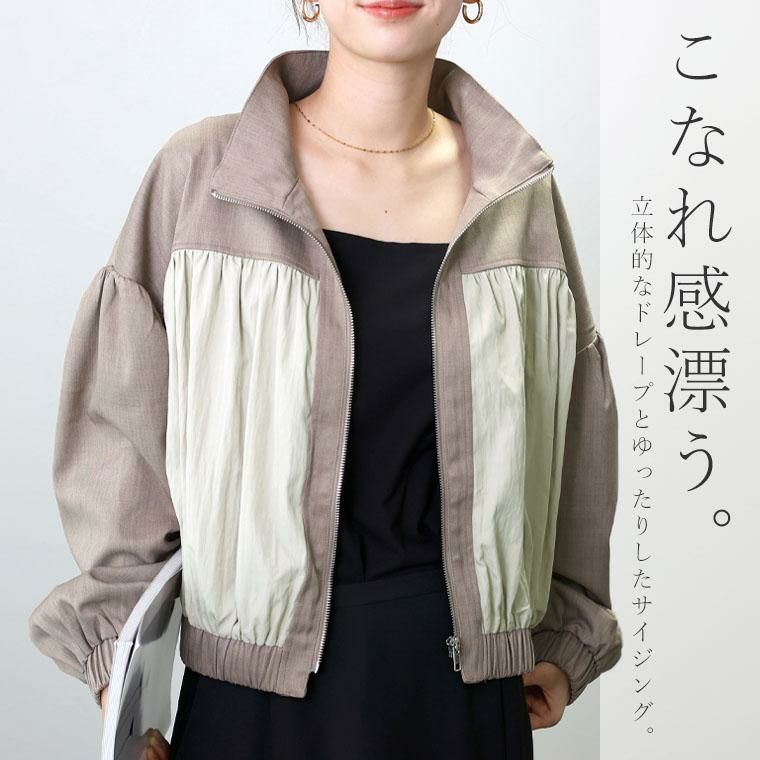 【ギャザー&異素材使いで軽やかさ際立つライトブルゾン】