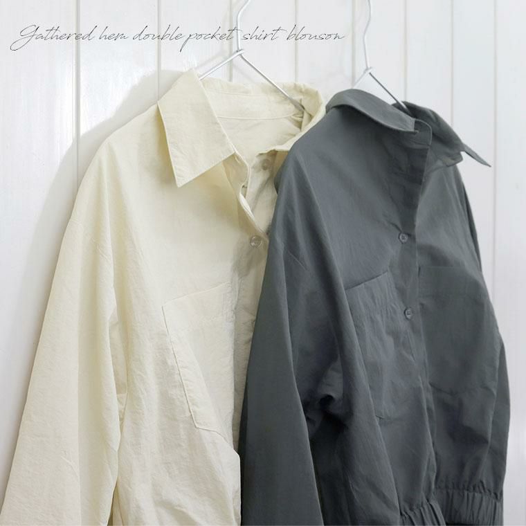裾ギャザー両ポケシャツブルゾン 【メール便可/ma3】