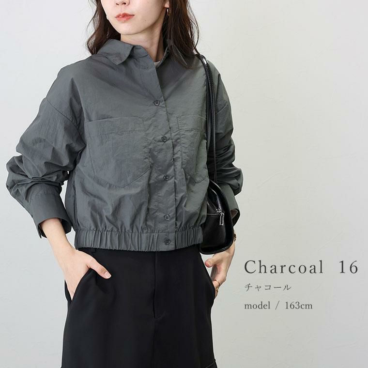 シャカシャカとした素材感が特徴のナイロンワッシャー素材。リンクル加工でシワを気にせず着られるのが魅力です。薄手なのでシャツ感覚で使えるのが便利。シャツ襟できちんと感とトレンド感アップ。ドロップショルダーが上半身を華奢に見せます。大きめの両ポケットがアクセント。上半身をコンパクトに見せてくれる視覚効果も嬉しい。裾のゴムギャザーが自然な立体シルエットを作ります。身幅にはゆとりがありつつ、長すぎない着丈でコーディネートをバランスよく見せます。ワンピースとも好相性。後ろヨーク切替とタックデザインでバックスタイルも手抜き感がありません。気温調節だけでなくトレンドも踏襲した、季節の変わり目に頼れるアイテムです。