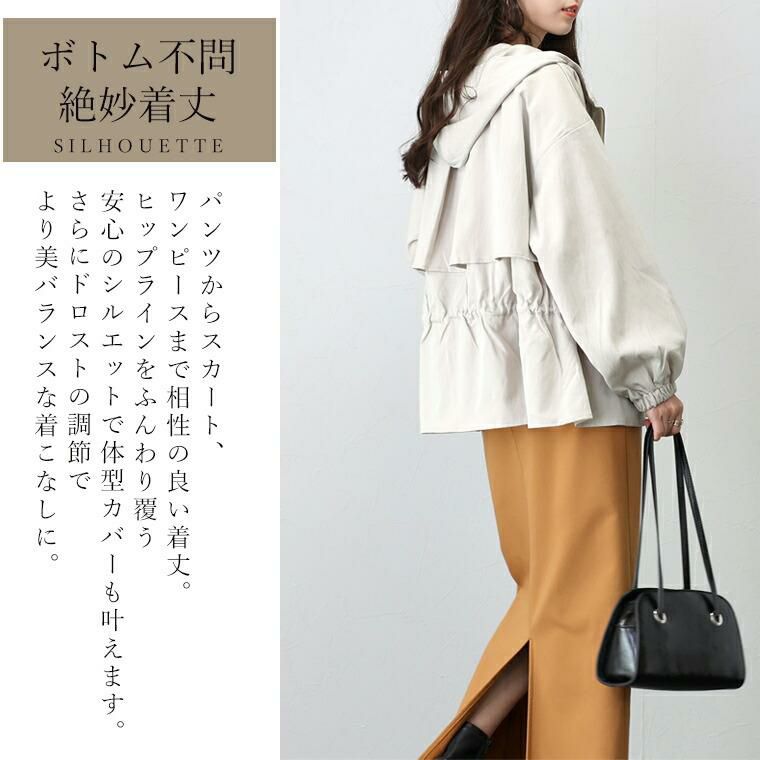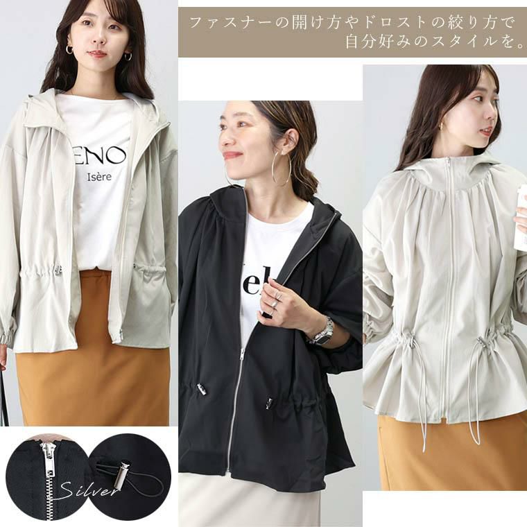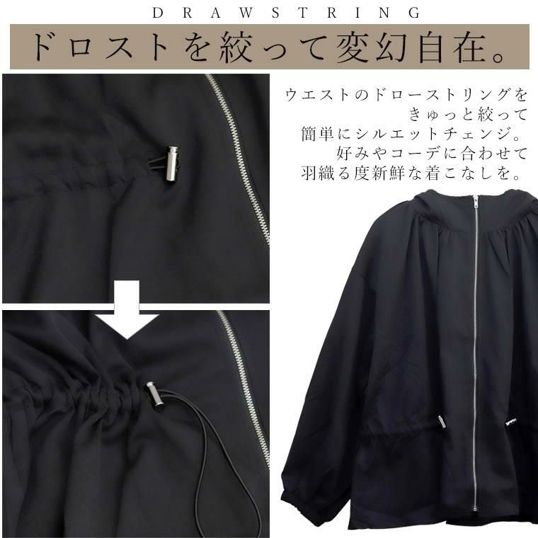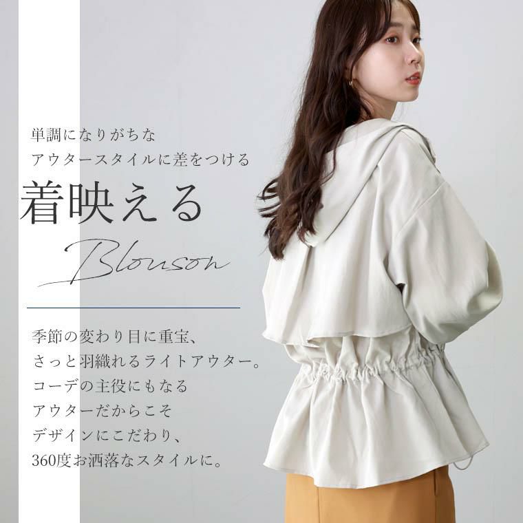 ブルゾン ジャケット ミドルアウター アウター ライトアウター 羽織り はおり 羽織 防寒 季節の変わり目 体型カバー 日焼け対策 日焼け防止 ひやけたいさく ひやけぼうし ひよけ クーラー対策 冷房対策 温度調節 気温調節 布帛 綾織り キレイ見え きれいめ キレイめ 綺麗め 上品 楽ちん ドロスト ドローストリング ペプラム カジュアル フェミニン フード 立体 シルバー ファスナー ゆるめ ゆったり ゆるめ アンブレラヨーク アンブレラ 袖デザイン リラックス おしゃれ お洒落 体型カモフラージュ 大人め ブラック 黒 くろ グレージュ カラバリ豊富 大きめ 大きい ワンマイルウエア ワンマイルウェア レディースファッション 無地 ラクチン らくちん 楽ちん 動きやすい プラスサイズ 着痩せ 華奢見え 脚長 脚長効果 ゆったりサイズ ゆる すっきり カバー 体型カバー きちんと シンプル カジュアル ナチュラル ベーシック オフィス オフィスカジュアル テレワーク 会議 食事会 ランチ 女友達 参観日 二次会 飲み会 上品 知的 女性らしい 女らしい 着映え オンライン飲み会 着回し 大人 大人カジュアル オトナ 女性 綺麗 きれい キレイ キレイめ 高見え 上質 大きいサイズ 細見え 女性服 アースカラー フリーサイズ 楽 ノンストレス 動きやすい ゆったり 高級感 母の日 プレゼント ギフト 贈り物 S M L LL 2L XL 20代 30代 40代 50代 おしゃれ パ―ト バイト 仕事 仕事用 ユニフォーム 春夏 春 夏 秋冬 秋 冬 お洒落 オシャレ かわいい 可愛い カワイイ かっこいい カッコいい FUNNY COMPANY ファニーカンパニー ふぁにーかんぱにー ファニカン
