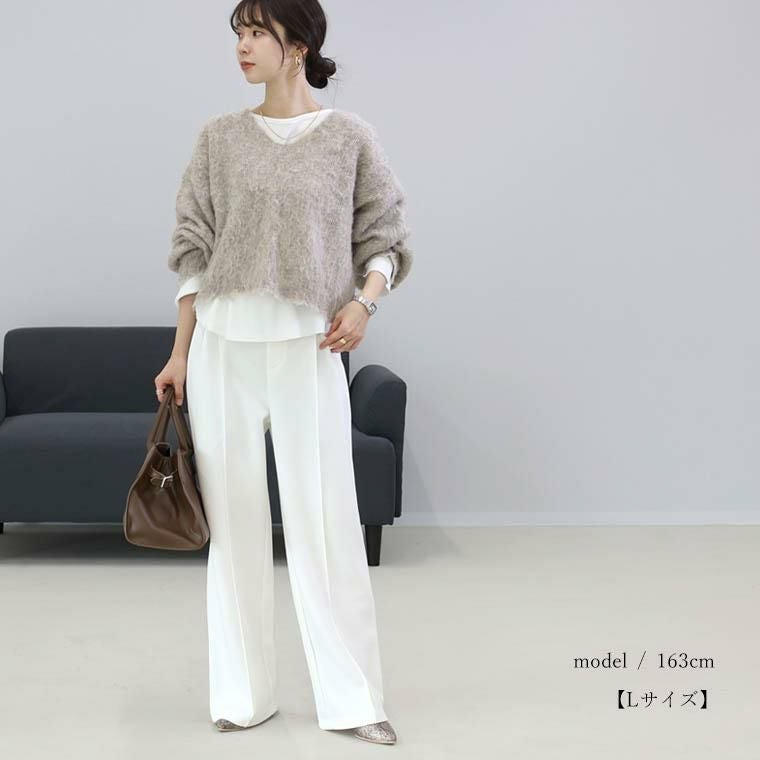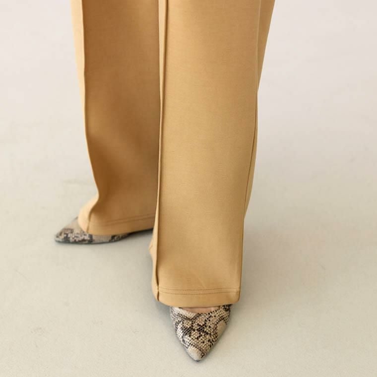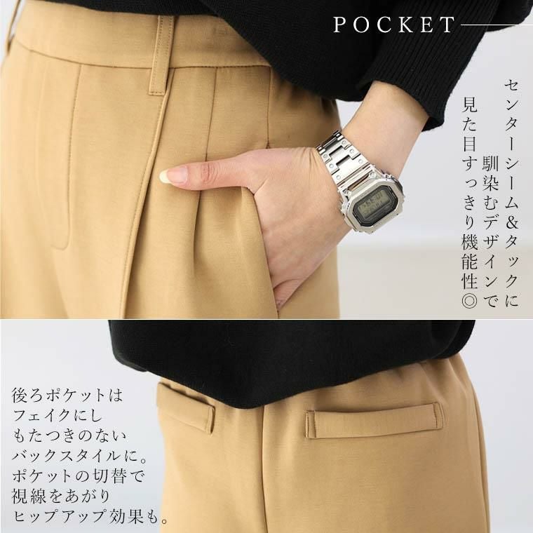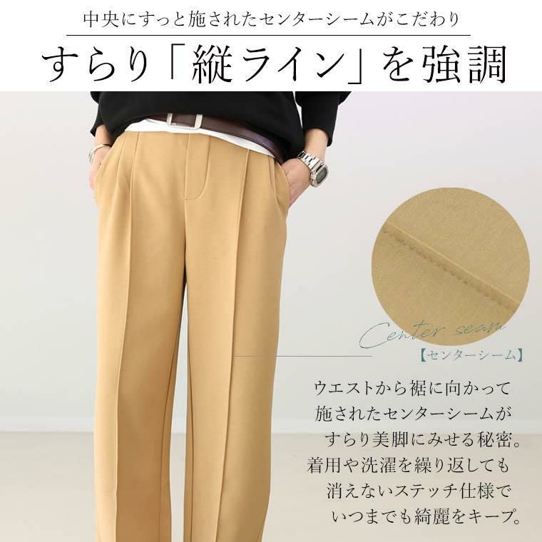 日常使いからお出掛け、フォーマルなシーンまでたっぷり活躍する美脚ワイドパンツ。脚のラインをすらっと見せる秘密は、ウエストから裾に向かって施されたセンターシーム。洗濯や着用を繰り返しても消えることのないステッチデザインで、美しさをキープします。きちんと見えする一着ながら、伸縮性のあるダンボール生地を採用することで穿き心地はリラックス。しっとり滑らかな肌あたりでロングシーズン着用いただけます。シルエットは安心感のあるワイド。広がり過ぎない絶妙なワイド感で気になるラインをカモフラージュしてくれます。サイズはM・Lの2サイズをご用意。よりジャストな穿き心地をお楽しみいただけます。