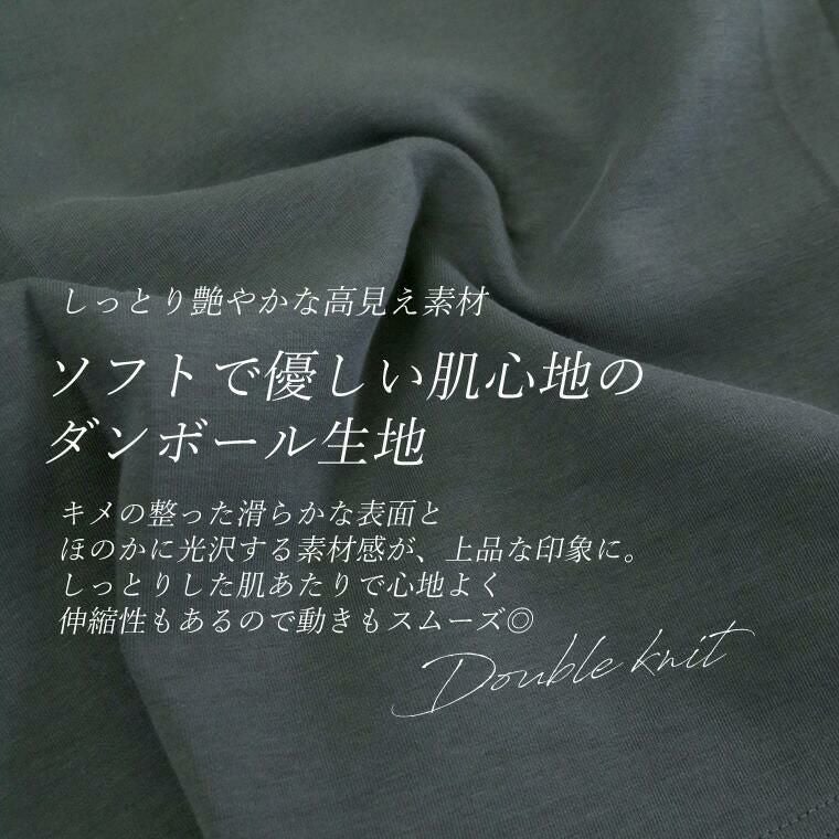 着丈はヒップが丁度隠れるくらい。袖丈は手首から9cm下。ゆったりしていて伸縮性があるので、とても動きやすくラクです。体のラインを拾わずヒップもしっかり隠れ、体型カバーに◎。袖のリブはしっかりしているので、好きな位置で止まります。
