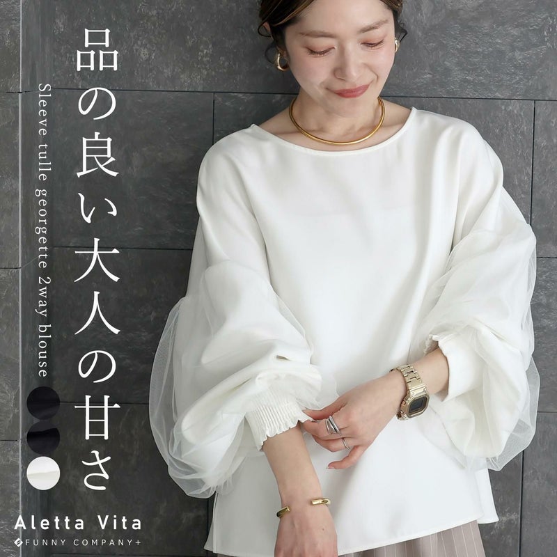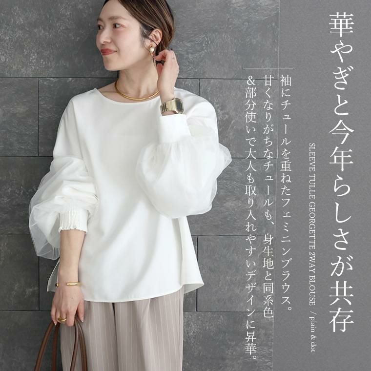 袖チュールジョーゼット2WAYブラウス 【メール便不可】