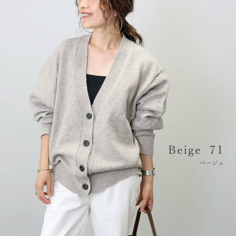 ゆるっとしたフォルムが大人の抜け感を誘うミドルゲージのカーディガン。たっぷりゆとりを持たせたサイジングが特徴。ゆったりとしたシルエットだからこそ体全体が大きく見え過ぎないよう、身頃のサイドと袖下に切替をあしらい裾に向かってシェイプするデザインに。着るだけで立体的に仕上がるようディテールにこだわりました。襟元は顔周りをシャープにみせる深Vネック。ワイドな身幅もすっきり着られます。着丈はヒップを覆う長め丈。安心感があり、パンツもスカートも合わせるアイテムを選びません。程よい厚みのミドルゲージニットで、インナーを変えて長い季節着られます。