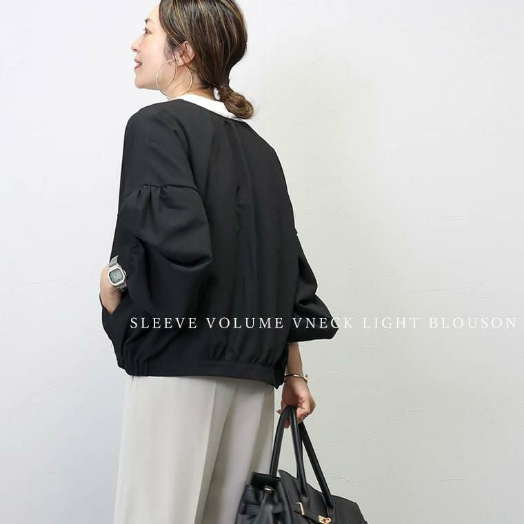 袖ボリュームVネックライトブルゾン 【メール便不可】