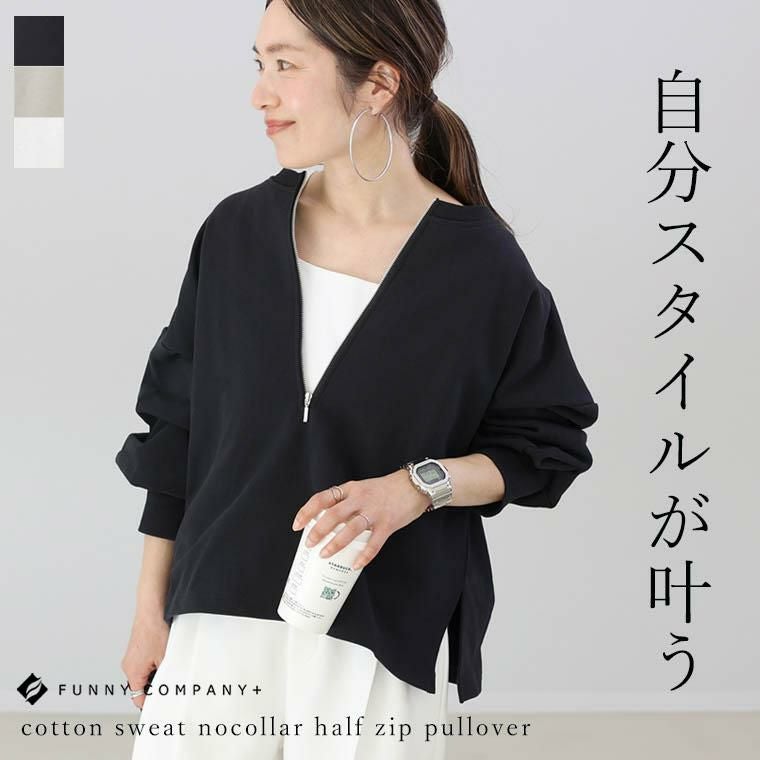 プルオーバー スウェット トップス カット 長袖 ドロップショルダー ハーフジップ ジップ シルバー スリットネック スリット ノーカラー レイヤード 重ね着 着痩せ 透けない 着やすい デコルテ シンプル キレイ見え きれいめ キレイめ 綺麗め 上品 楽ちん イージー イージー素材 ルーズ ゆるめ PO ゆったり リラックス 綿 コットン おしゃれ お洒落 体型カモフラージュ 大人め ブラック クロ 黒 黒色 グレージュ オフホワイト オフ ホワイト 白 カラバリ豊富 大きめ 大きい ワンマイルウエア ワンマイルウェア レディースファッション 無地 ラクチン らくちん 楽ちん 動きやすい プラスサイズ 着痩せ 華奢見え 脚長 脚長効果 ゆったりサイズ ゆる すっきり カバー 体型カバー きちんと シンプル カジュアル ナチュラル ベーシック オフィス オフィスカジュアル テレワーク 会議 食事会 ランチ 女友達 参観日 二次会 飲み会 上品 知的 女性らしい 女らしい 着映え オンライン飲み会 着回し 大人 大人カジュアル オトナ 女性 綺麗 きれい キレイ キレイめ 高見え 上質 大きいサイズ 細見え 女性服 アースカラー フリーサイズ 楽 ノンストレス 動きやすい ゆったり 高級感 母の日 プレゼント ギフト 贈り物 S M L LL 2L XL 20代 30代 40代 50代 おしゃれ パ―ト バイト 仕事 仕事用 ユニフォーム 春夏 春 夏 秋冬 秋 冬 お洒落 オシャレ かわいい 可愛い カワイイ かっこいい カッコいい FUNNY COMPANY ファニーカンパニー ふぁにーかんぱにー ファニカン