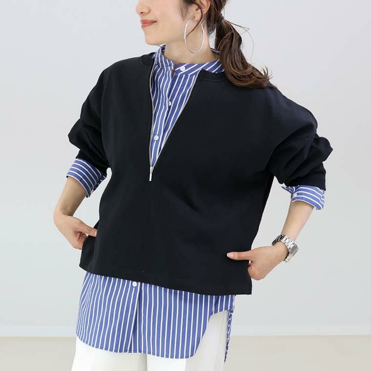【自分スタイルが叶う ハーフジップ綿スウェット】