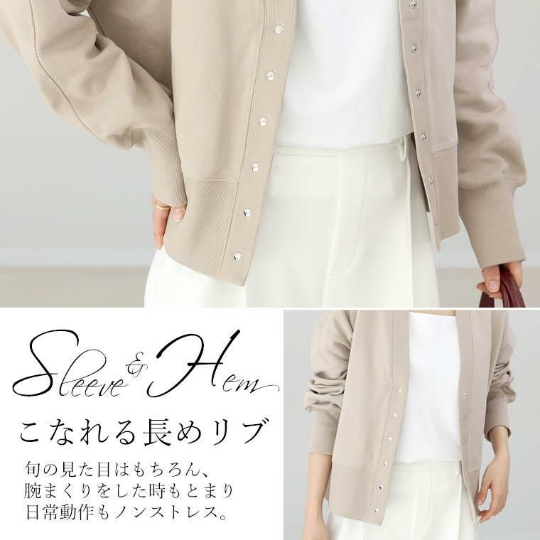 ■■一部予約■■3月上旬発送予定 綿スウェットキーネックスナップカーディガン 【メール便不可】2月13日午前10時再販開始