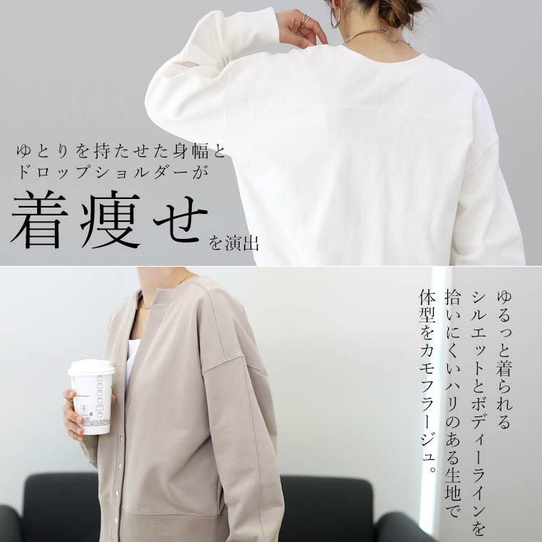 カーディガン カーデ カーデガン かーでがん かーでぃがん 羽織り はおり 羽織 防寒 季節の変わり目 体型カバー UV UV加工 UV対策 日焼け対策 日焼け防止 ひやけたいさく ひやけぼうし ひよけ 温度調節 気温調節 綿 スウェット キレイ見え きれいめ キレイめ 綺麗め 上品 楽ちん イージー イージー素材 スナップボタン ドットボタン シルバー 銀 前開き ルーズ ゆるめ Vネック 2WAY プルオーバー キーネック ブイネック ゆったり ぶいねっく リブ ゆるめ リラックス おしゃれ お洒落 体型カモフラージュ 大人め ブラック クロ 黒 黒色 グレージュ  オフホワイト ホワイト 白 カラバリ豊富 大きめ 大きい ワンマイルウエア ワンマイルウェア レディースファッション 無地 ラクチン らくちん 楽ちん 動きやすい プラスサイズ 着痩せ 華奢見え 脚長 脚長効果 ゆったりサイズ ゆる すっきり カバー 体型カバー きちんと シンプル カジュアル ナチュラル ベーシック オフィス オフィスカジュアル テレワーク 会議 食事会 ランチ 女友達 参観日 二次会 飲み会 上品 知的 女性らしい 女らしい 着映え オンライン飲み会 着回し 大人 大人カジュアル オトナ 女性 綺麗 きれい キレイ キレイめ 高見え 上質 大きいサイズ 細見え 女性服 アースカラー フリーサイズ 楽 ノンストレス 動きやすい ゆったり 高級感 母の日 プレゼント ギフト 贈り物 S M L LL 2L XL 20代 30代 40代 50代 おしゃれ パ―ト バイト 仕事 仕事用 ユニフォーム 春夏 春 夏 秋冬 秋 冬 お洒落 オシャレ かわいい 可愛い カワイイ かっこいい カッコいい FUNNY COMPANY ファニーカンパニー ふぁにーかんぱにー ファニカン