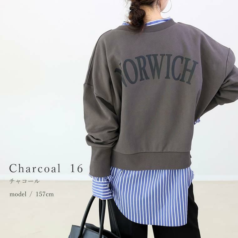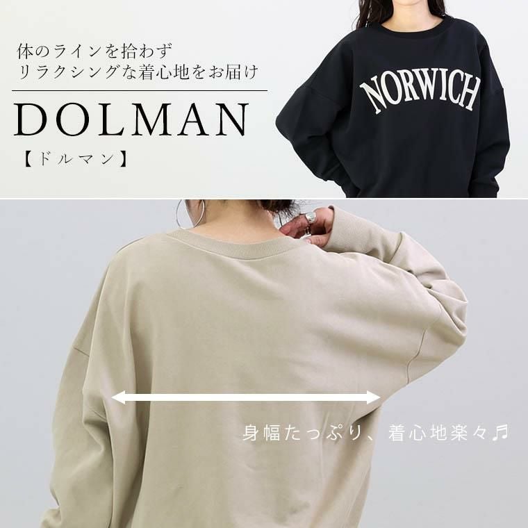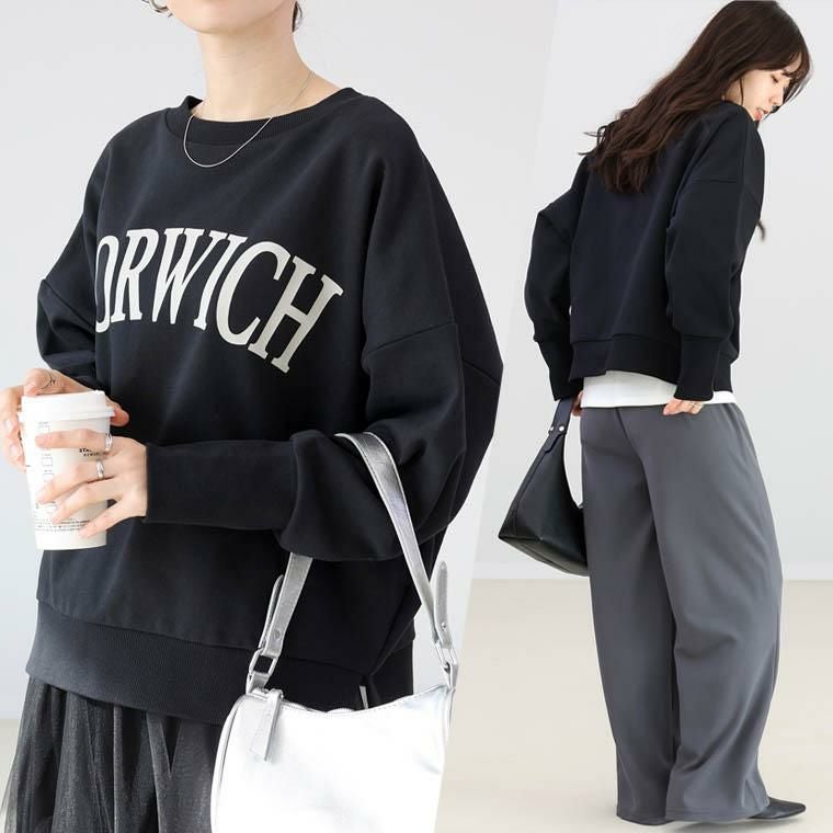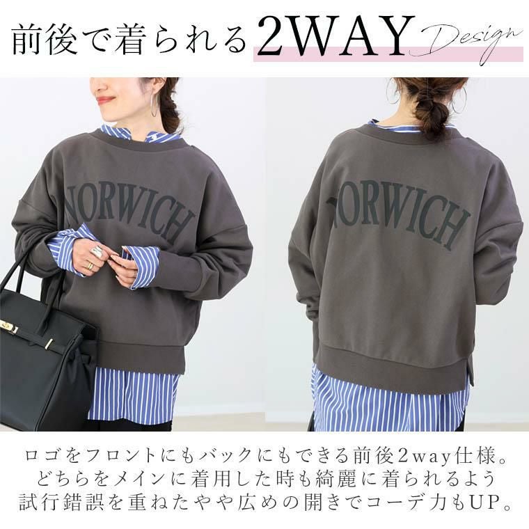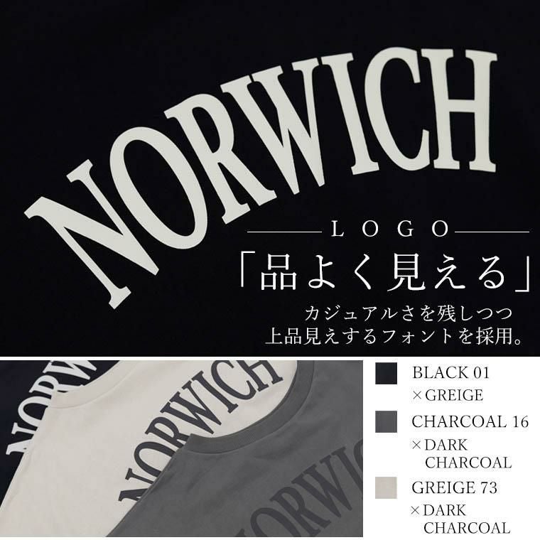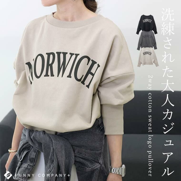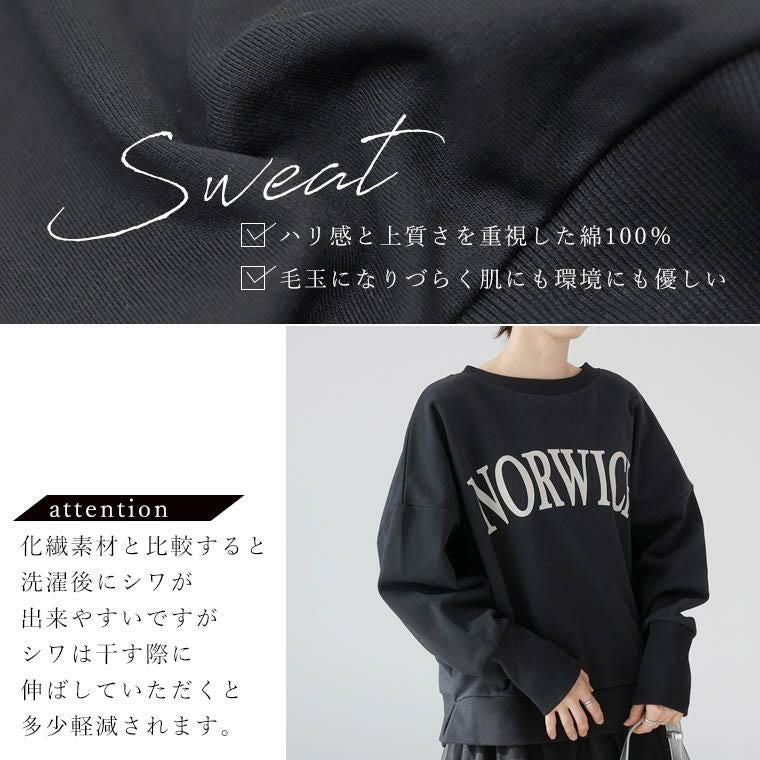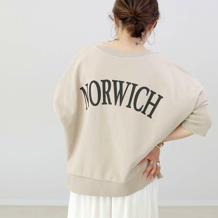 大人の女性に似合うようこだわって企画したカジュアルの王道、ロゴトップス。生地は程よいハリ感と上質さを重視した綿100%のスウェット素材。毛玉になりづらく、しかも風合い良く肌にも環境にも優しい、デイリーに扱いやすい生地を選びました。たっぷり身幅をもたせたドルマンシルエットとボートネックの掛け合わせが絶妙。見た目はすっきり、着心地はゆったりのシルエットを実現します。目を惹くロゴは、シンプルながら上半身をコンパクトにみせる大きさで、カジュアルさを残しつつ上品に見えるフォントを採用。コントラストが強すぎないよう色も調節しています。さらに、前後で着られバックロゴトップスとしても楽しめる。コーディネートや好みに合わせてご活用いただけます。※「NORWICH(ノリッチ)は、イングランドの東部に位置する美しい都市の名前です。」