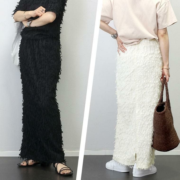 スカート ボトムス フリンジ フェザー Iライン ロングスカート ロング タイトスカート キレイ見え きれいめ キレイめ 綺麗め 上品 楽ちん ロング丈 長い 長め ナチュラル すかーと 総ゴム ゴムウエスト ウエストボム ゴムウェスト ウェストゴム ポケット ブラック 黒 くろ アイボリー きなり オフホワイト ホワイト 白 カラバリ豊富 大きめ 大きい ワンマイルウエア ワンマイルウェア レディースファッション 無地 ラクチン らくちん 楽ちん 動きやすい プラスサイズ 着痩せ 華奢見え 脚長 脚長効果 ゆったりサイズ ゆる すっきり カバー 体型カバー きちんと シンプル カジュアル ナチュラル ベーシック オフィス オフィスカジュアル テレワーク 会議 食事会 ランチ 女友達 参観日 二次会 飲み会 上品 知的 女性らしい 女らしい 着映え オンライン飲み会 着回し 大人 大人カジュアル オトナ 女性 綺麗 きれい キレイ キレイめ 高見え 上質 大きいサイズ 細見え 女性服 アースカラー フリーサイズ 楽 ノンストレス 動きやすい ゆったり 高級感 母の日 プレゼント ギフト 贈り物 S M L LL 2L XL 20代 30代 40代 50代 おしゃれ パ―ト バイト 仕事 仕事用 ユニフォーム 春夏 春 夏 秋冬 秋 冬 お洒落 オシャレ かわいい 可愛い カワイイ かっこいい カッコいい FUNNY COMPANY ファニーカンパニー ふぁにーかんぱにー ファニカン