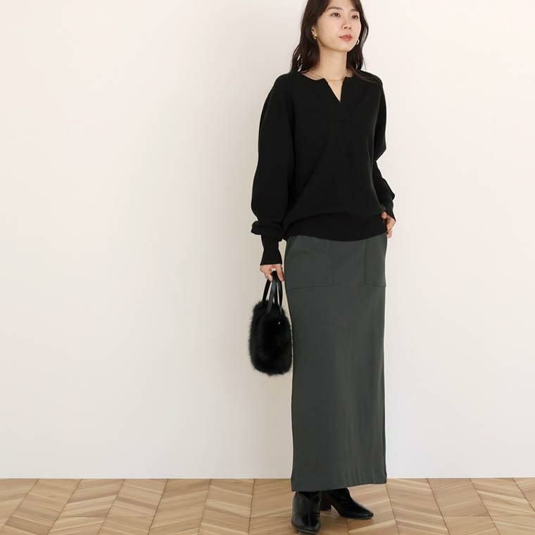 裏毛ベイカーポケットロングスカート