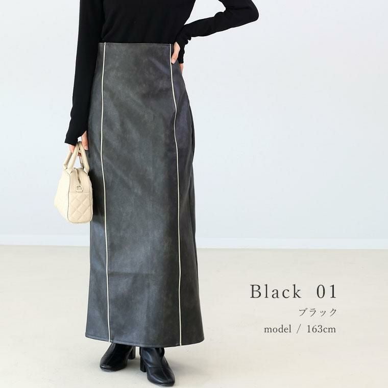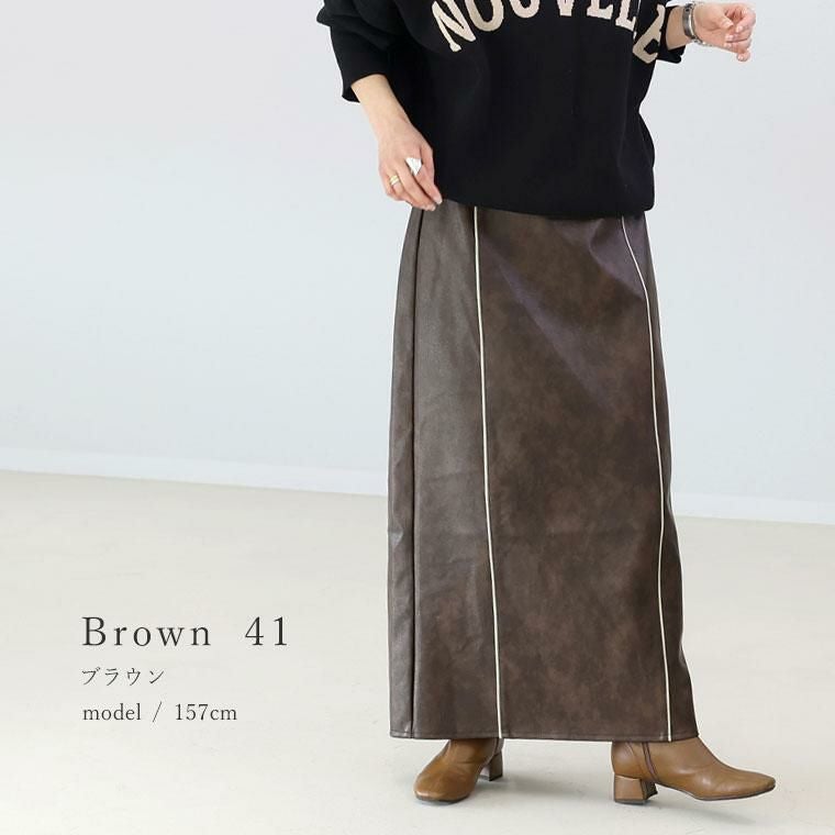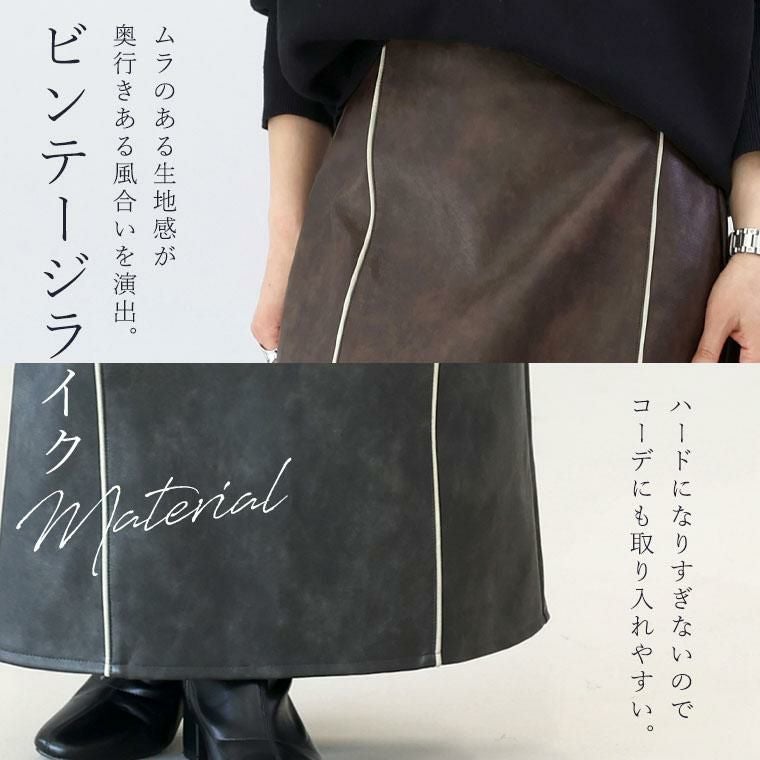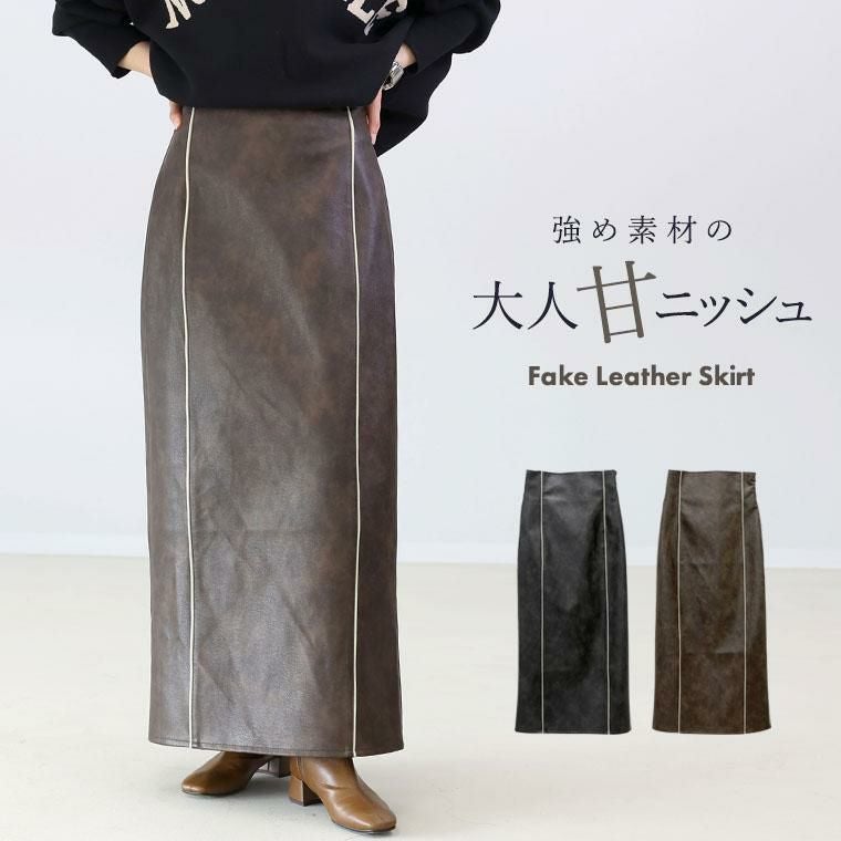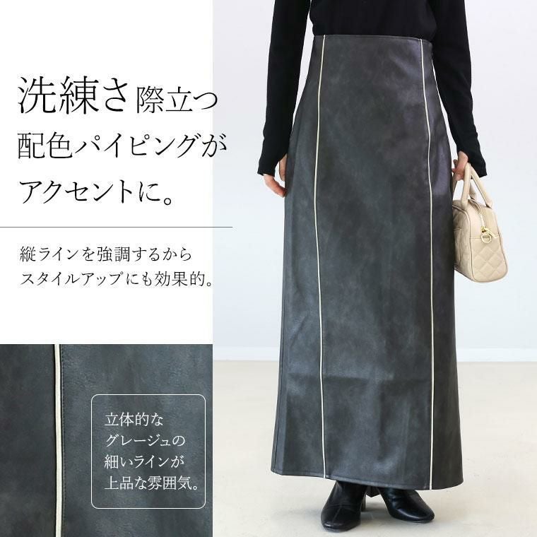 フェイクレザーパイピングロングスカート 【メール便不可】