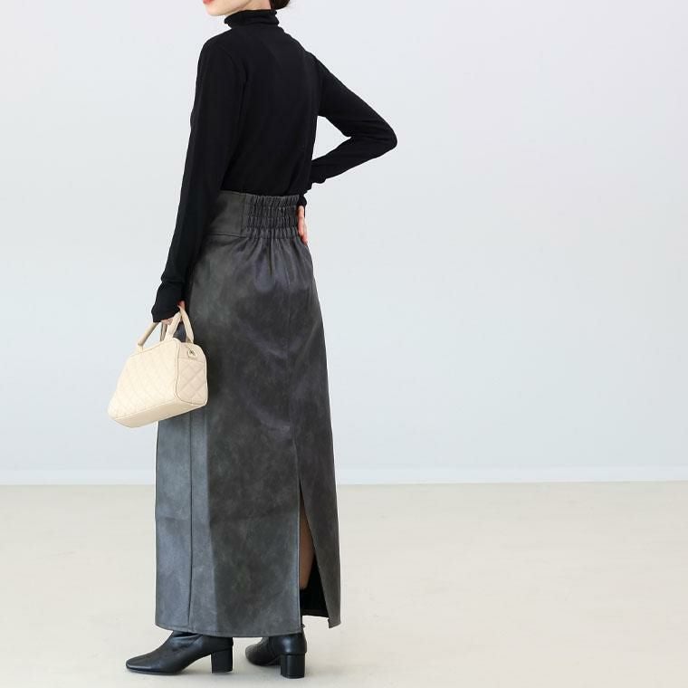 スカート タイト ペンシルミディアム ロング Iライン フェイクレザー エコレザー ビンテージ ユーズド キレイ見え きれいめ キレイめ 綺麗め 上品 楽ちん ウエストシャーリング 後ろウエストゴム ハイウエスト ハイウェスト ストレスフリー ストレート ブラック ぶらっく 黒 くろ クロ ブラウン ぶらうん 茶 ちゃ チャ カラバリ豊富 大きめ 大きい ワンマイルウエア ワンマイルウェア レディースファッション 無地 ラクチン らくちん 楽ちん 動きやすい プラスサイズ 着痩せ 華奢見え 脚長 脚長効果 ゆったりサイズ ゆる すっきり カバー 体型カバー きちんと シンプル カジュアル ナチュラル ベーシック オフィス オフィスカジュアル テレワーク 会議 食事会 ランチ 女友達 参観日 二次会 飲み会 上品 知的 女性らしい 女らしい 着映え オンライン飲み会 着回し 大人 大人カジュアル オトナ 女性 綺麗 きれい キレイ キレイめ 高見え 上質 大きいサイズ 細見え 女性服 アースカラー フリーサイズ 楽 ノンストレス 動きやすい ゆったり 高級感 母の日 プレゼント ギフト 贈り物 S M L LL 2L XL 20代 30代 40代 50代 おしゃれ パ―ト バイト 仕事 仕事用 ユニフォーム 春夏 春 夏 秋冬 秋 冬 お洒落 オシャレ かわいい 可愛い カワイイ かっこいい カッコいい FUNNY COMPANY ファニーカンパニー ふぁにーかんぱにー ファニカン