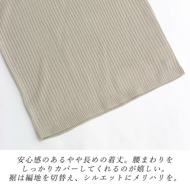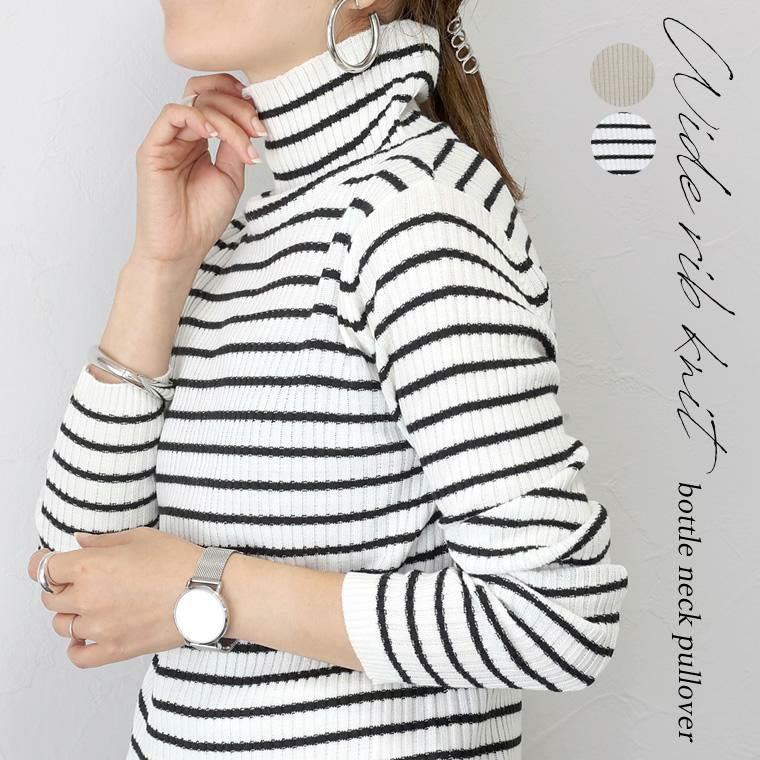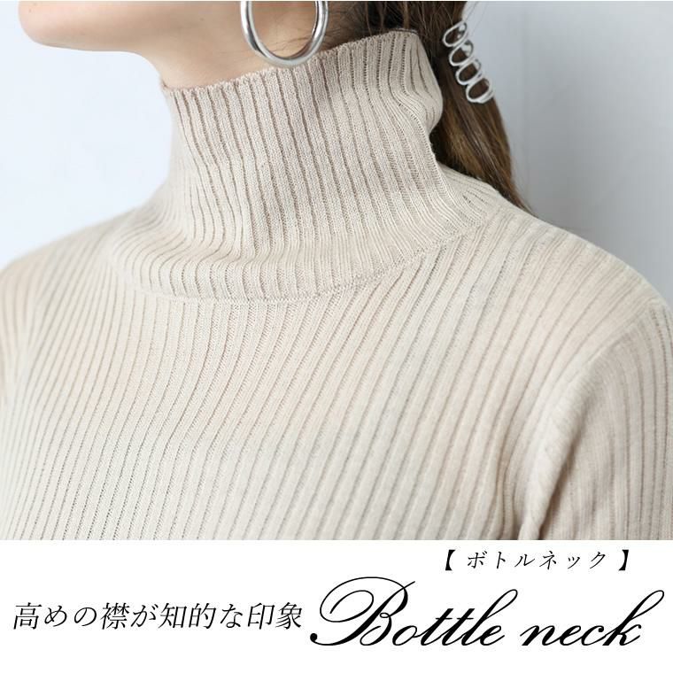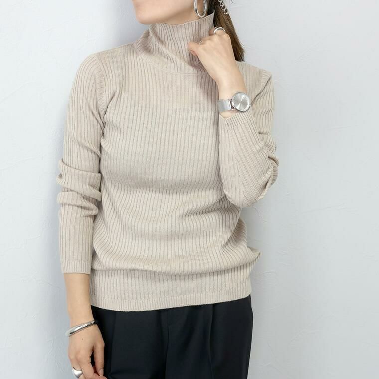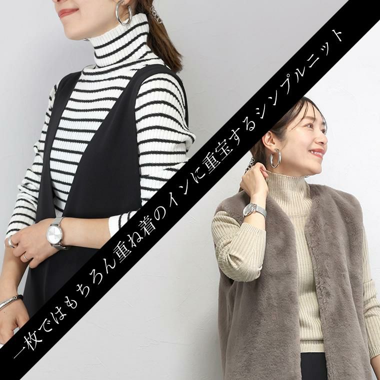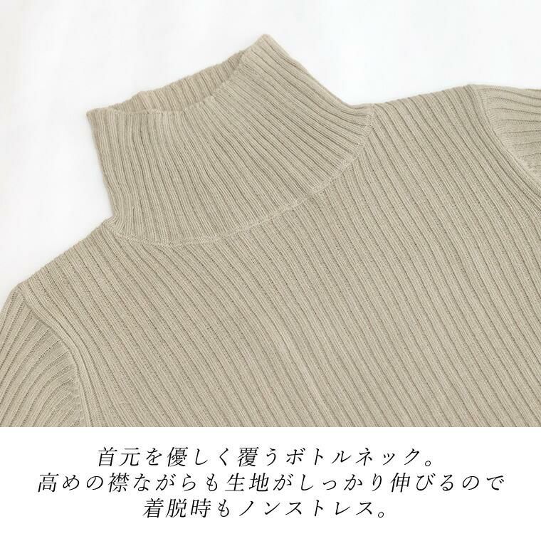 ボトルネックワイドリブニットプルオーバー トレンド不問で着まわせるハイゲージニット。 一枚ではもちろん、シャツやワンピース、サロペット、ベストなどの 重ね着にも重宝するボトルネックデザイン。薄手でもたつきがなく、 使い勝手が良いのが魅力です。縦ラインを強調する幅広のリブ編みで 伸縮性も抜群。すっきりとした見た目に仕上げてくれるのも嬉しい。 着丈は腰まわりをしっかりカバーするやや長め設定。 ボトムへのインもすっきりきまります。一枚あると便利なアイテムです。