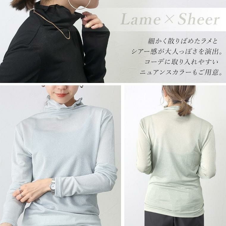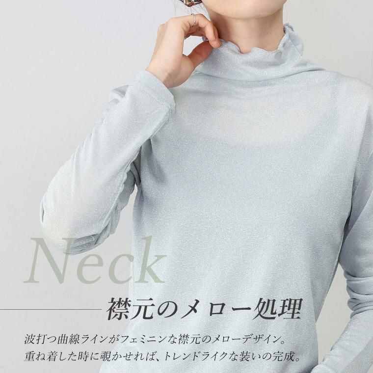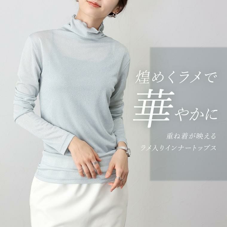 煌めくラメが上品 重ね着を華やかに彩るハイネックトップス