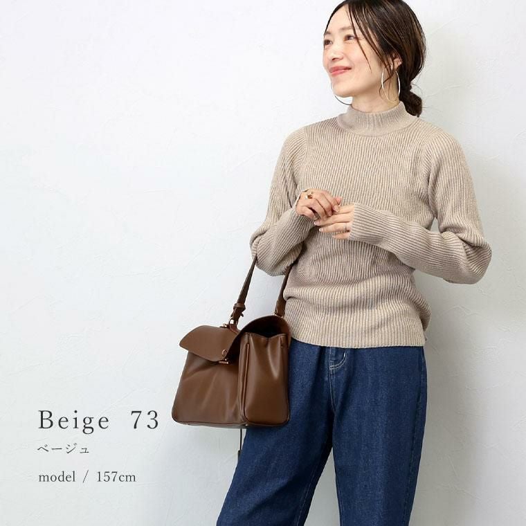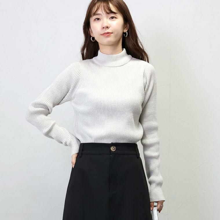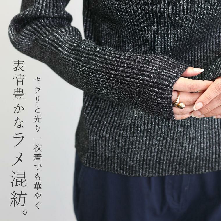 ボトルネックラメリブ編みニットプルオーバー 【メール便不可】