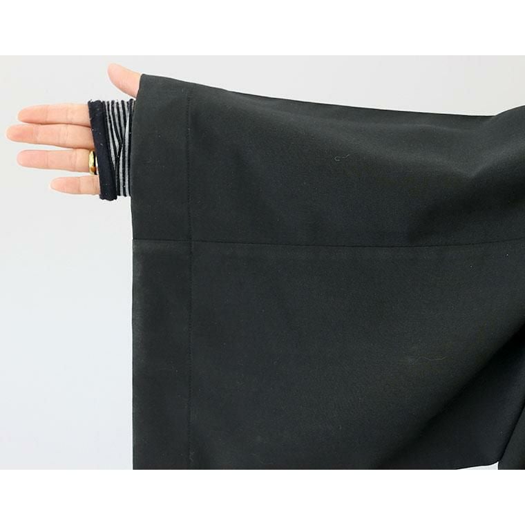 着丈はくるぶしくらい。ゆとりのあるサイズ感で厚手の物も中に合わせられます。ヒップや脚のラインを拾わず体型カバー◎。両脇にポケットがあり便利です。