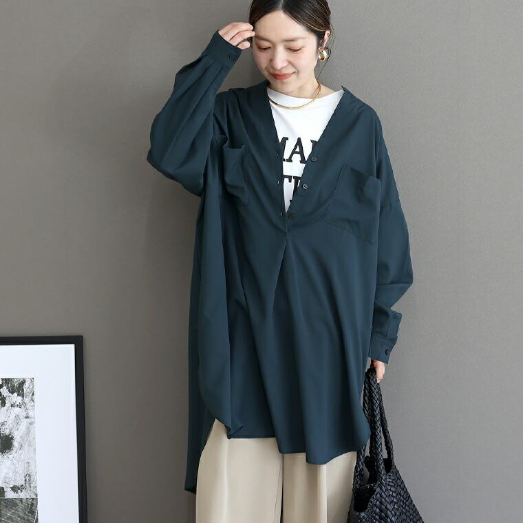 他の画像を見る シャーリングのシャツ袖が上品に着映えるデザイントップス シルケットスムース布帛袖切替ブラウスカットソー 【メール便可/ma1.5】 ¥ 4,290 税込 カートに入れる お気に入りに登録する