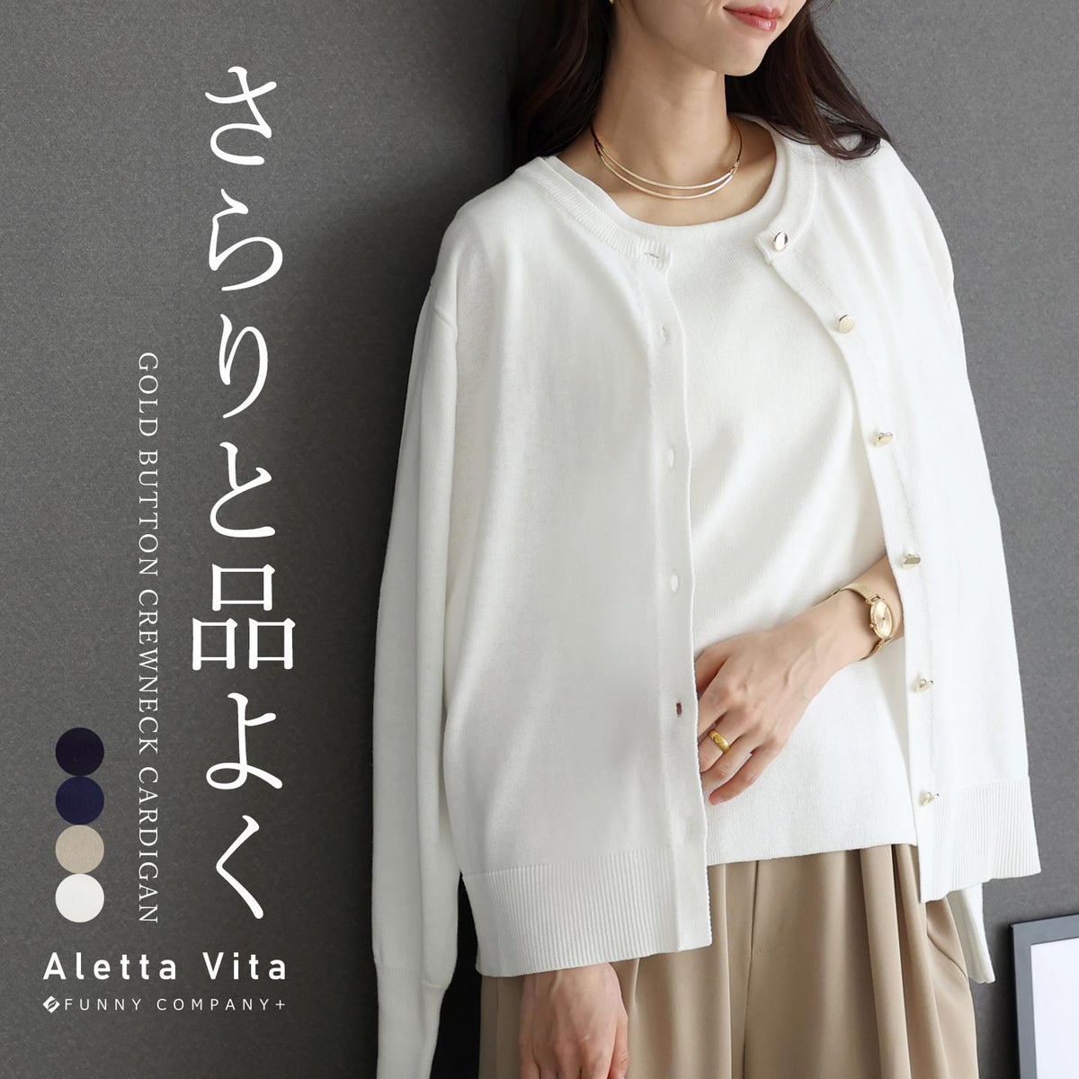 他の画像を見る さらりと品よく 華やぐ格上げカーデ 新作72H限定クーポン利用で10%OFF★ゴールドボタンクルーネック長袖カーディガン 【メール便不可】 通常販売価格 ¥ 4,950 税込 販売期間 2026/04/08 10:00 〜 2026/04/11 10:00 カートに入れる お気に入りに登録する