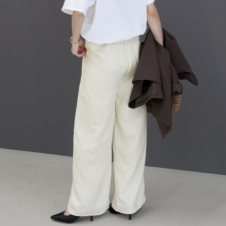 他の画像を見る 見た目も穿き心地も涼しげなストライプパンツ 新作72H限定クーポン利用で10%OFF★4月22日10時発売開始★サッカーストライプドロストイージーパンツ 【メール便可/ma3】 通常販売価格 ¥ 4,730 税込 販売期間 2026/04/22 10:00 〜 2026/04/25 10:00 カートに入れる お気に入りに登録する