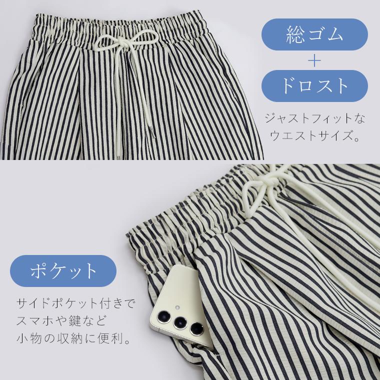 他の画像を見る 見た目も穿き心地も涼しげなストライプパンツ 新作72H限定クーポン利用で10%OFF★サッカーストライプドロストイージーパンツ 【メール便可/ma3】 通常販売価格 ¥ 4,730 税込 販売期間 2026/04/22 10:00 〜 2026/04/25 10:00 カートに入れる お気に入りに登録する