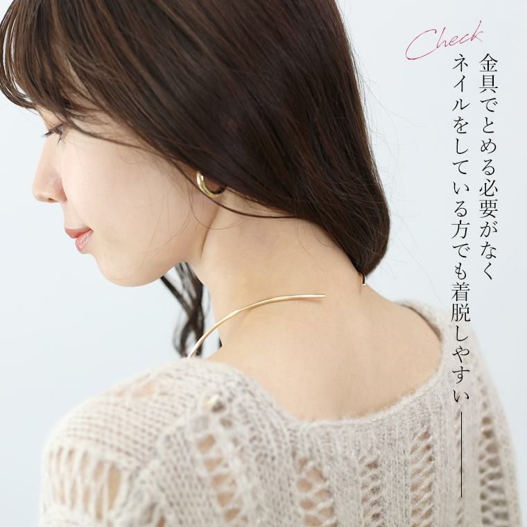 シンプルながらも程よい存在感でコーデを華やげるメタルチョーカー。首元が綺麗にみえるシンプルなラインで、華美すぎず洗練された印象に。金具でとめる必要がなく、首にすっとはめ込むだけなので、ネイルをしている方でも着脱しやすいのも魅力です。普段使いはもちろん、オフィスからちょっとしたお呼ばれの場など多くのシーンに活躍します。いつものコーデを格上げしてくれるアイテムです。