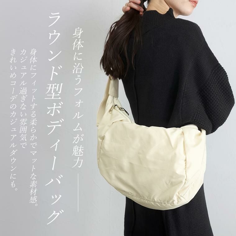 バッグ 鞄 かばん ショルダー ショルダーバッグ 斜めかけ 肩掛け 小物 アクセサリー ナイロン 手持ち 綺麗め ナチュラル クロワッサン ハーフムーン ラウンド 三日月 ボディバッグ 軽い 軽量 ブラック クロ 黒 黒色 オフベージュ オフ ベージュ 白 カラバリ豊富 ワンマイルウェア レディースファッション 無地  きちんと シンプル カジュアル ナチュラル ベーシック オフィス オフィスカジュアル テレワーク リモートワーク リモート 会議 食事会 ランチ 女友達 参観日 二次会 飲み会 上品 知的 女性らしい 女らしい 着映え オンライン飲み会 着回し 大人 大人カジュアル オトナ 女性 綺麗 きれい キレイ キレイめ 高見え 上質 上品 大きめ 大きい 大きいサイズ 体型カバー 華奢見え 着痩せ 細見え 着回し 大人 大人カジュアル オトナ 女性 綺麗 女性 女性服 アースカラー フリーサイズ レディースファッション ラクチン 楽 らくちん 楽ちん ノンストレス 動きやすい プラスサイズ 着回し プラスサイズ ゆったり ゆったりサイズ ゆる すっきり シンプル 無地 きれい キレイ きれいめ キレイめ 高見え 上質 高級感 母の日 プレゼント ギフト 贈り物 S M L LL 2L XL 20代 30代 40代 50代 おしゃれ パ―ト バイト 仕事 仕事用 ユニフォーム 春夏 春 夏 秋冬 秋 冬 お洒落 オシャレ かわいい 可愛い カワイイ かっこいい カッコいい FUNNY COMPANY ファニーカンパニー ふぁにーかんぱにー ファニカン