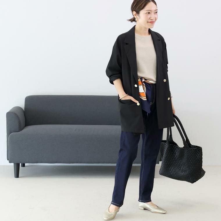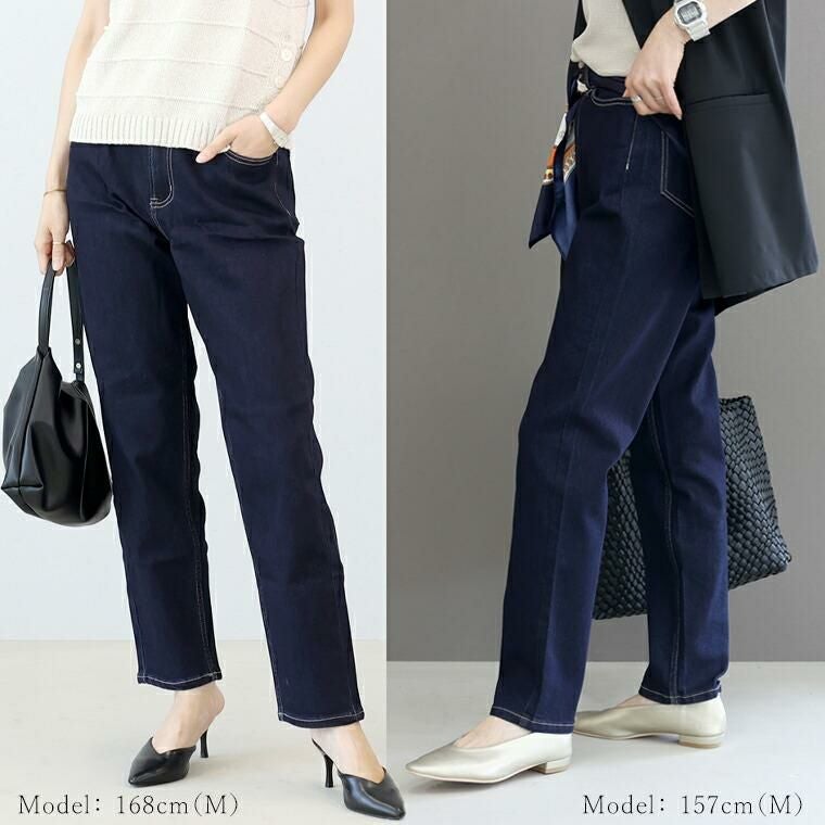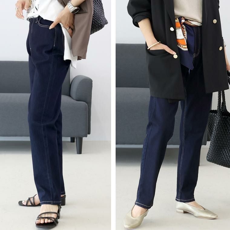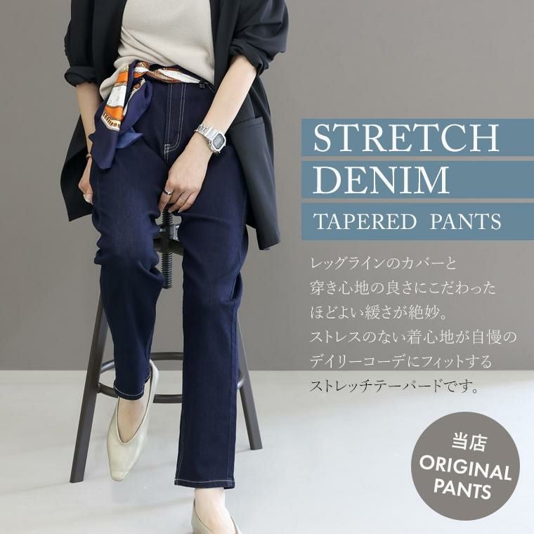 【ほどよい緩さが大人のデイリーコーデにフィットするストレッチデニムテーパードパンツ】