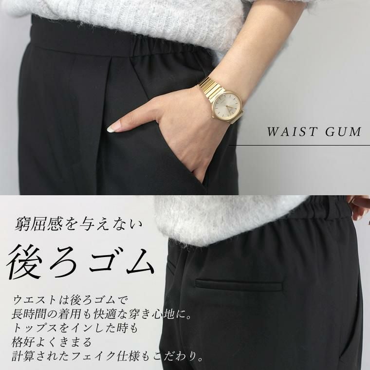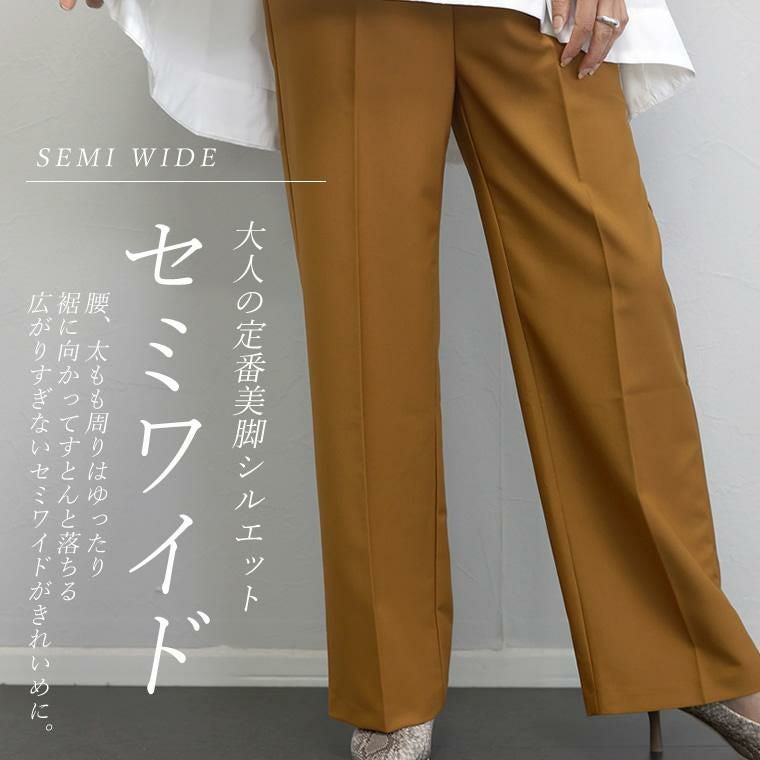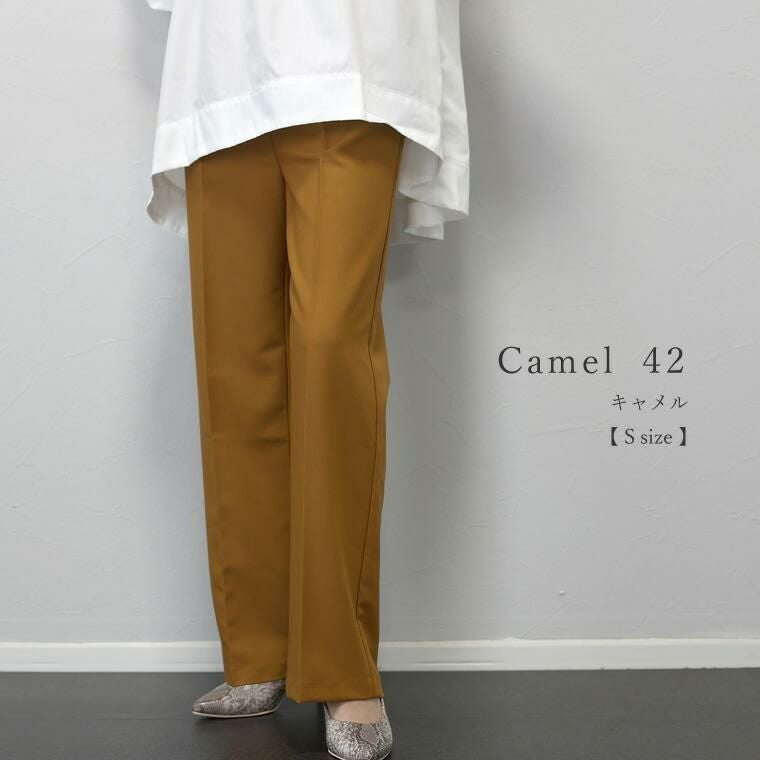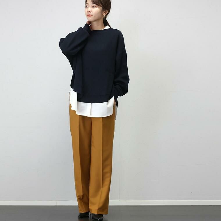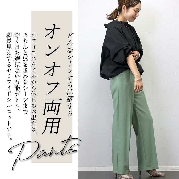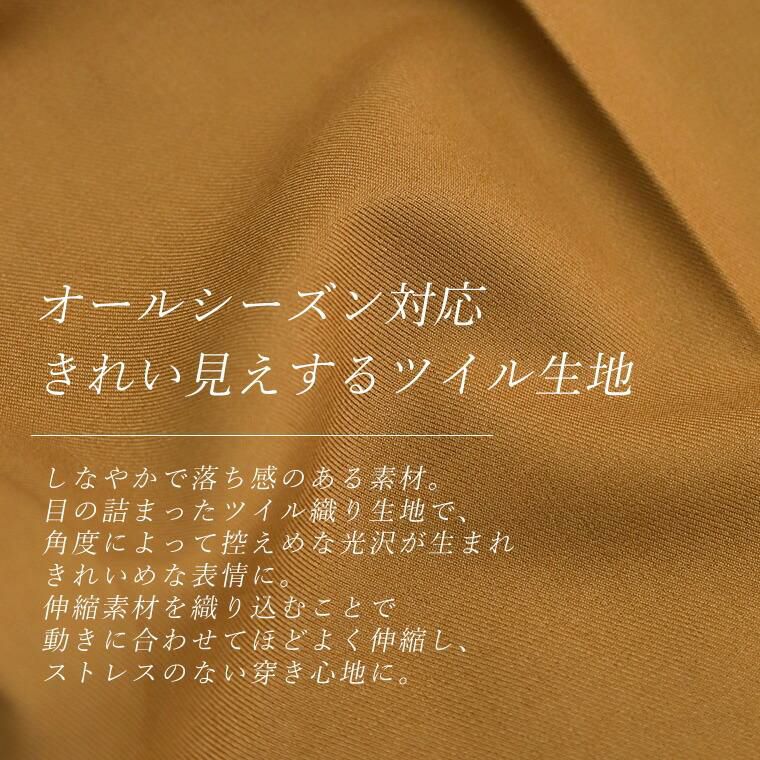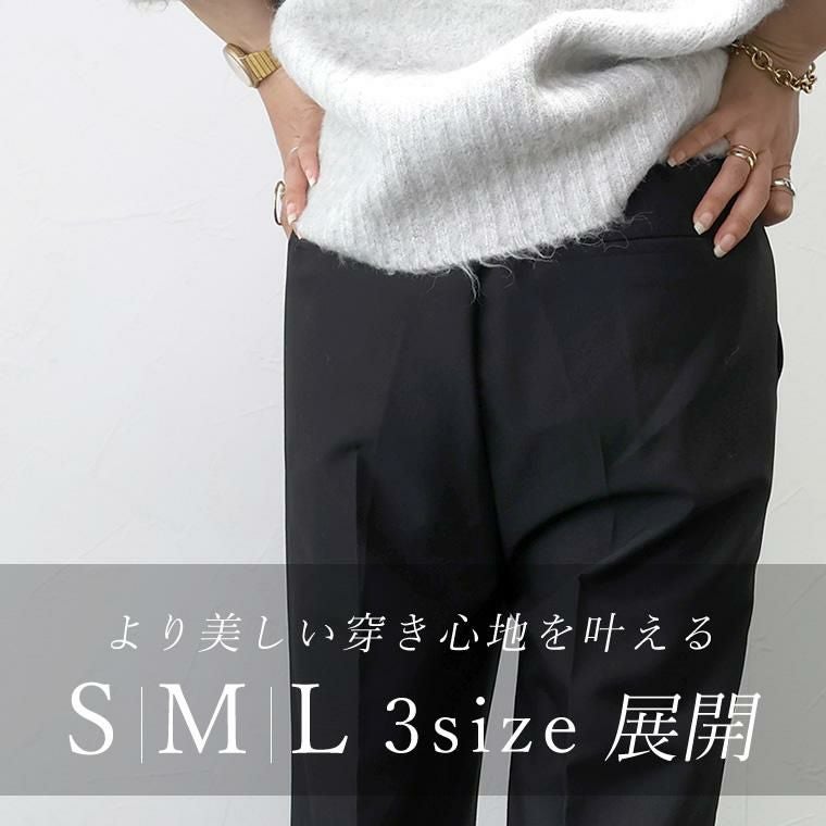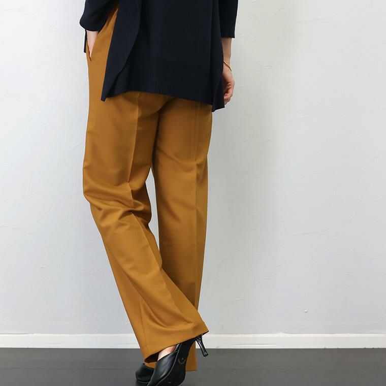 エステルツイルセンタープレスタックパンツ 穿き心地の楽さとシルエットの美しさ、両方にこだわった 大人の女性の為の一着。オンオフ問わずオールシーズン対応する 主力アイテムです。生地にはしなやかな落ち感素材をセレクト。 目の詰まったツイル織り生地は、角度によって控えめな光沢を生み きれいめコーデにも合わせやすい。シルエットはほどよいゆとりを持たせた 広がりすぎないセミワイド。裾に向かってすとんとしたストレートラインを描き 穿くだけで美脚に。センタープレスが脚長効果を期待させるアクセントに なっています。ベーシックで毎日のコーデに頼れる有能ボトム。
